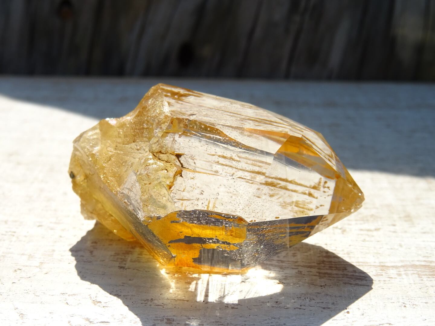 石肌も照り照りツヤツヤで、ファセットのシャープな結晶形も美しいです。また、リモナイトによってゴールドになったゴールデンヒーラーでもあります。
