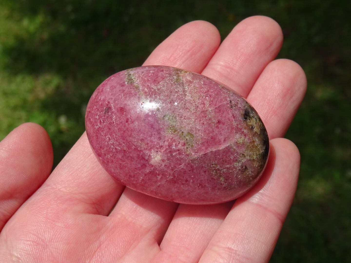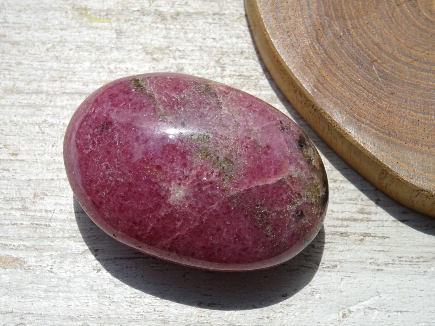 グァバカラーというのかな、やや赤紫がかったピンクのような、「果肉たっぷり」というような素敵な色合いをしています。ロードナイトも色が浅かったり黒い成分が多かったりとクオリティはまちまちですが、こちらは色合い・フォルムともにとても美しく、これはなかなか出会えないな、と思いセレクトしました。