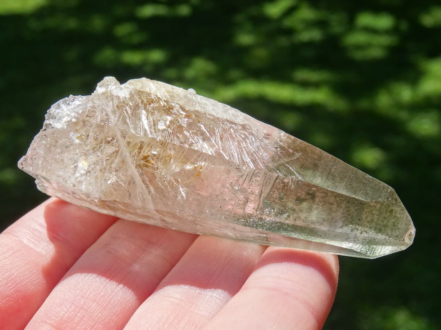 ガネーシュらしいな~というクローライト(緑泥石)の彩りと、内側はゴールドのルチルも。また、ルチルかはわからないのですが、ホワイトの針結晶もたくさん内包されています。