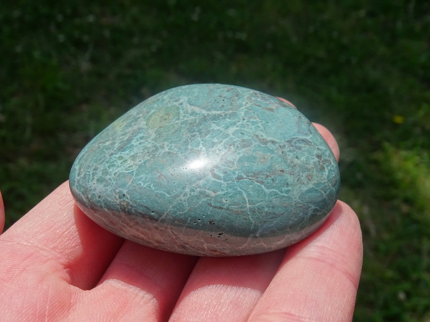 全面ポリッシュされているようで、光沢のある石肌とツルツルの肌心地をしています。スパイダーウェブのような模様もよいですね。