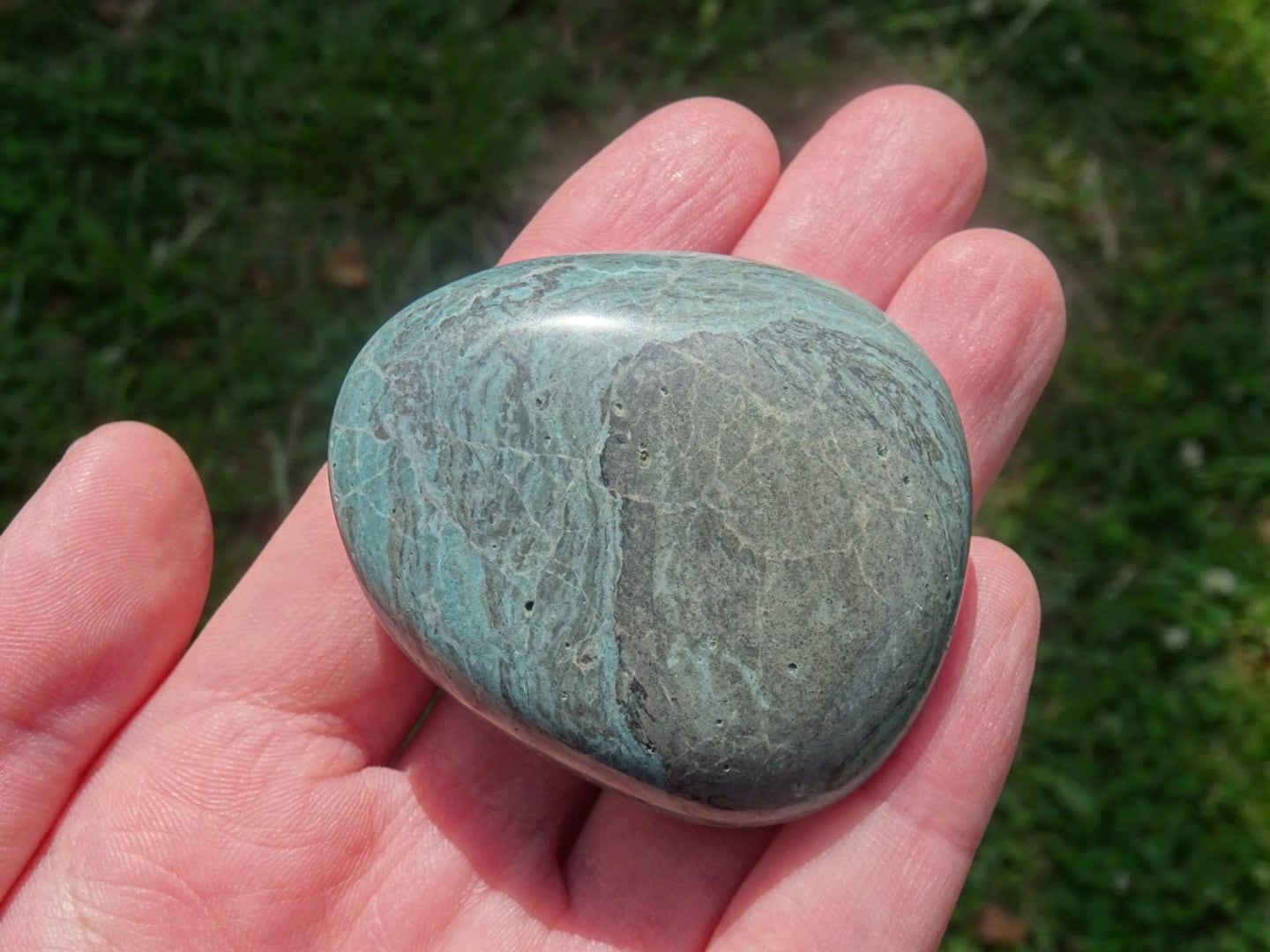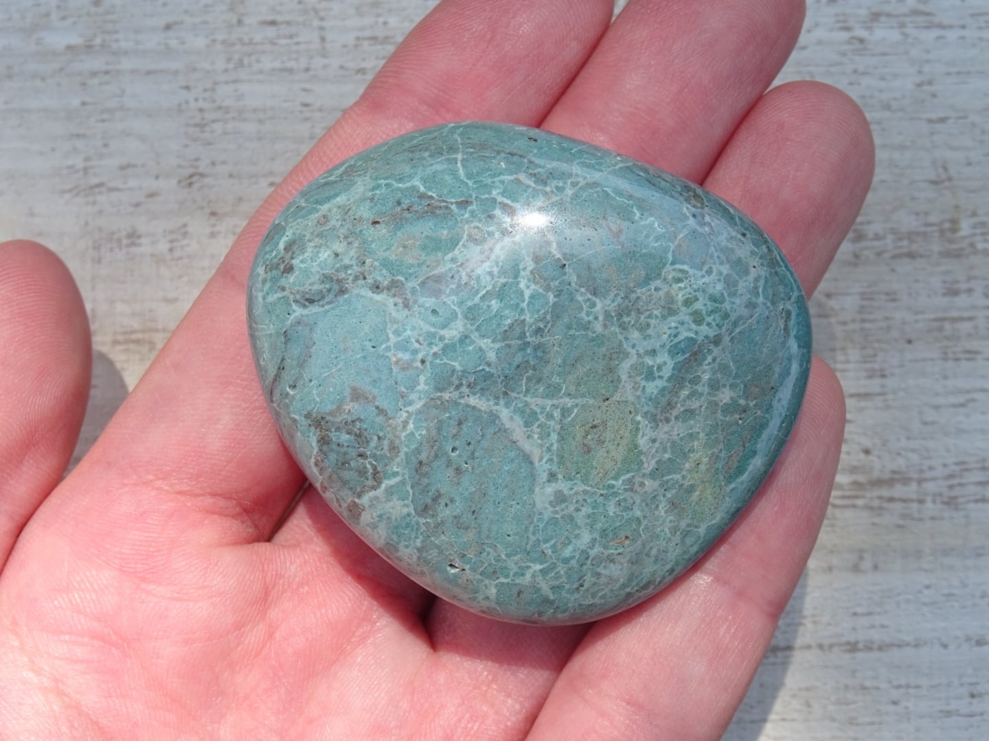 こちらはまるでアマゾナイト(天河石)のような淡いブルーが美しい1点。