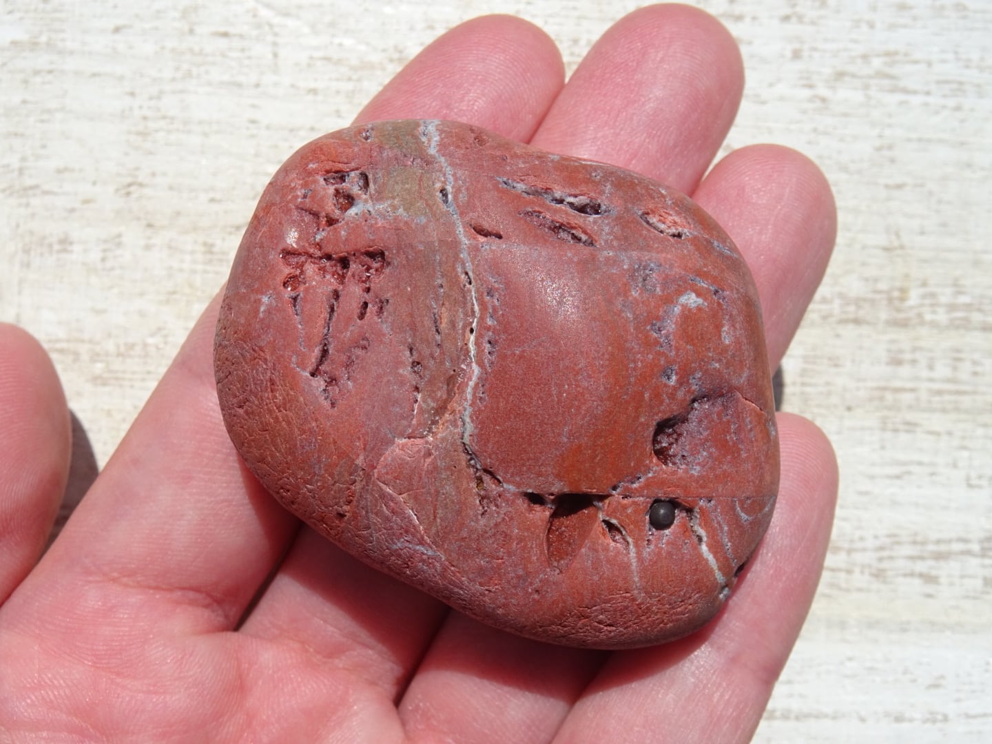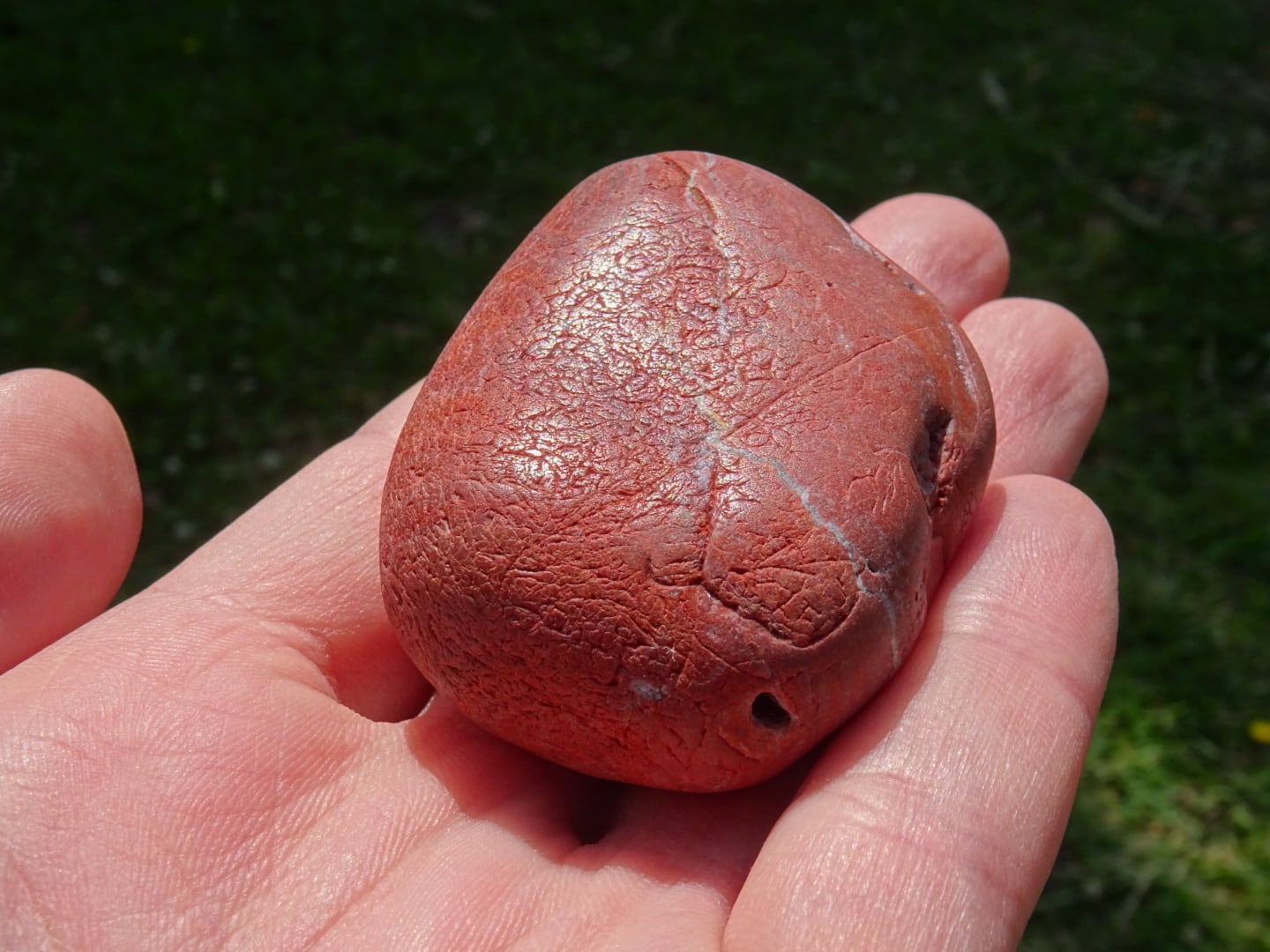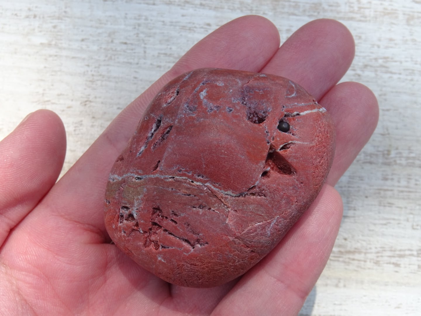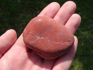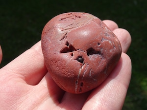 こちらはおそらく原石ままかな?という印象の、川流れ石のような素朴な姿。赤茶けたような色合いが「和」っぽくて素敵ですね。