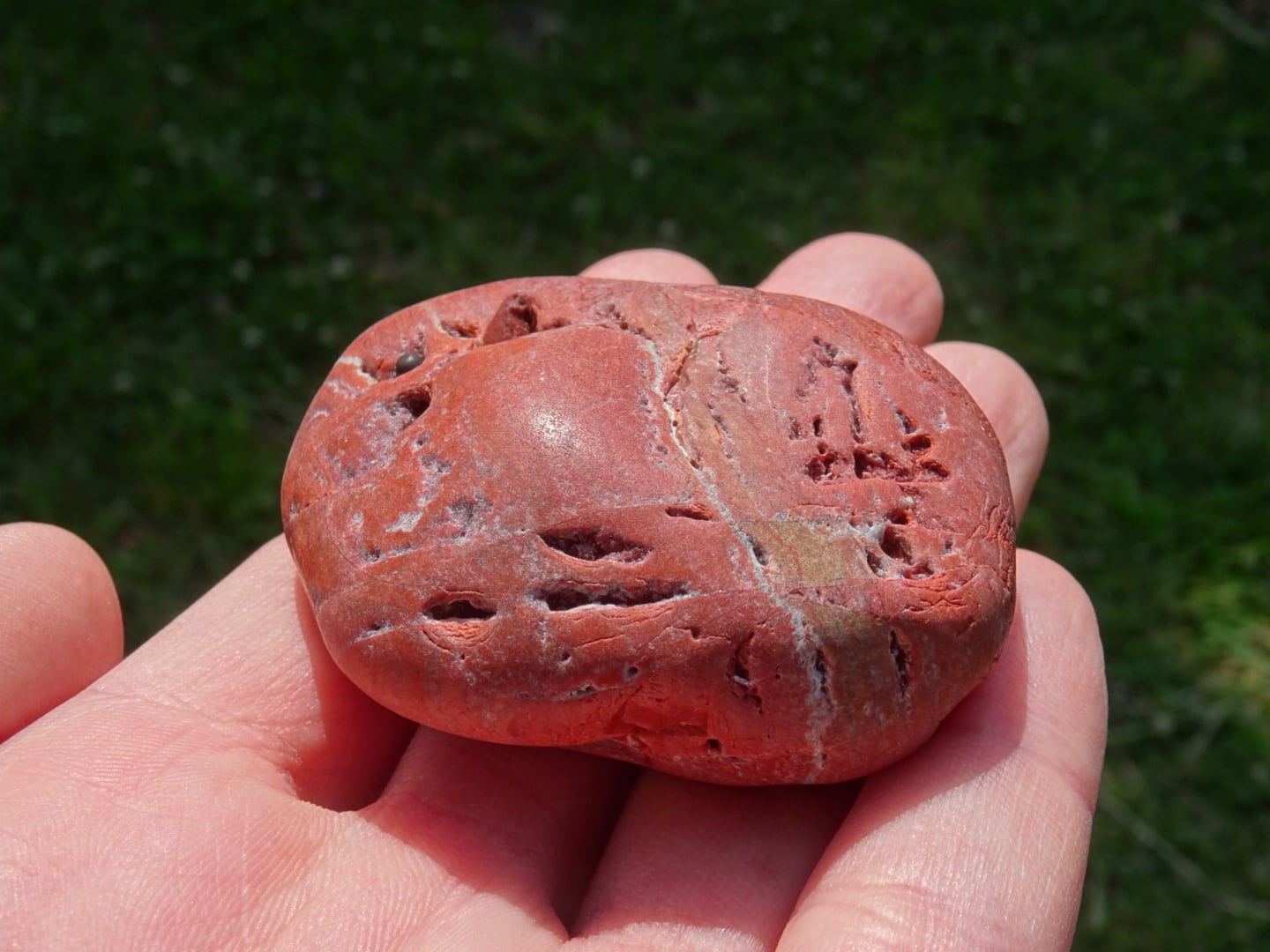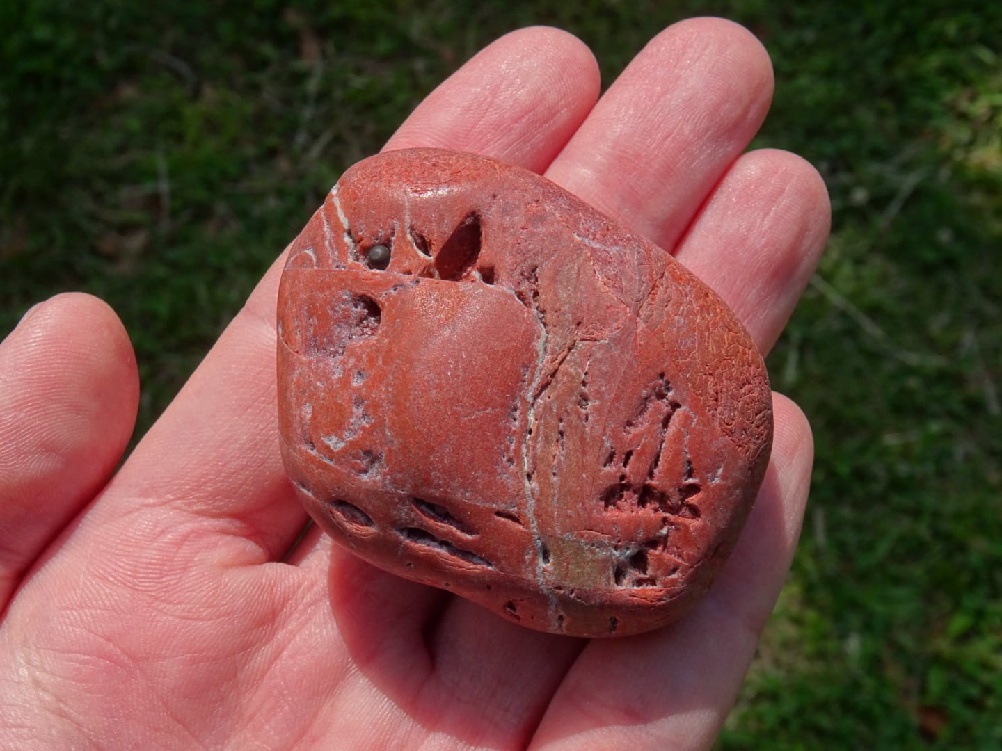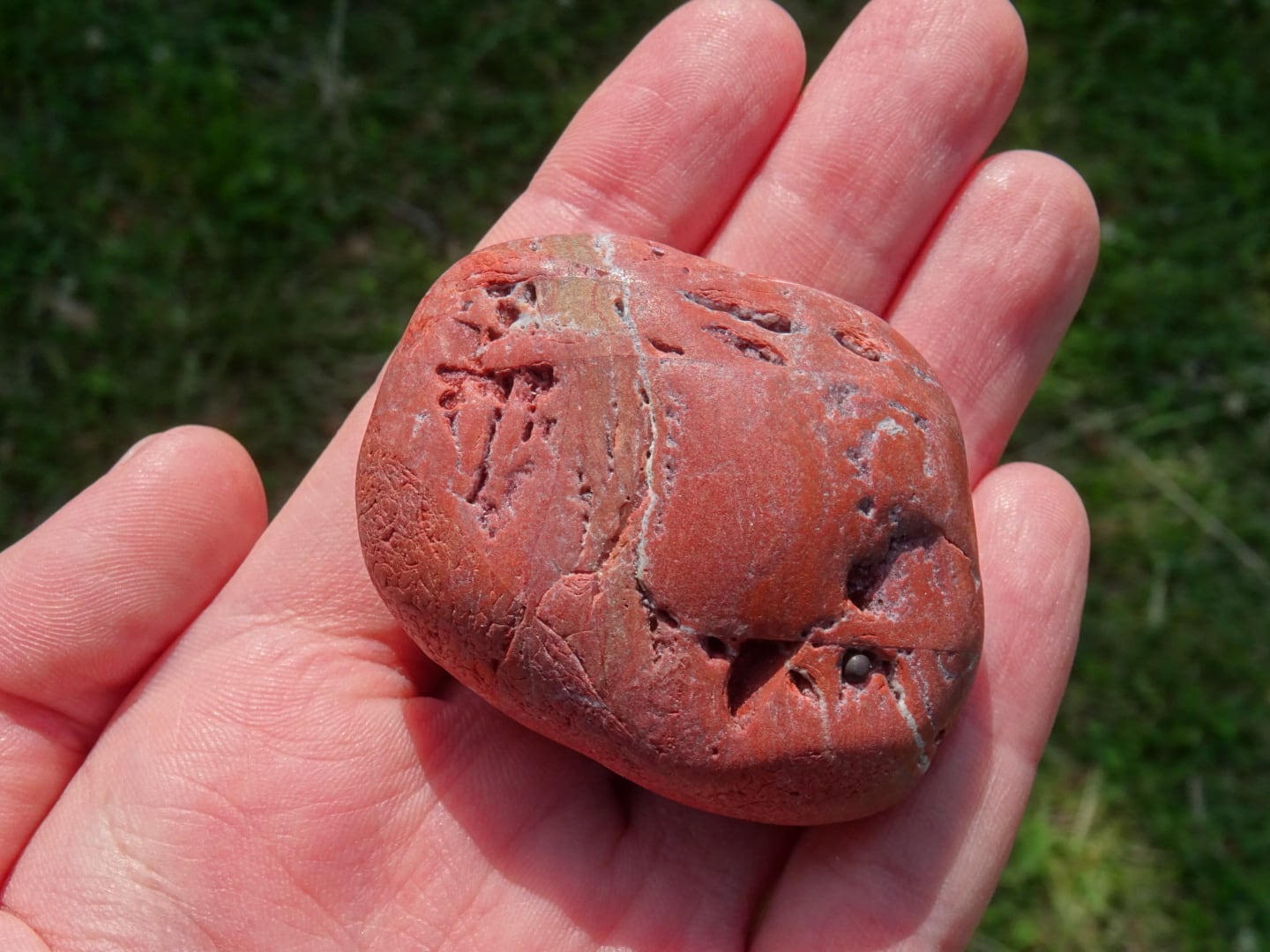 こちらはおそらく原石ままかな?という印象の、川流れ石のような素朴な姿。赤茶けたような色合いが「和」っぽくて素敵ですね。