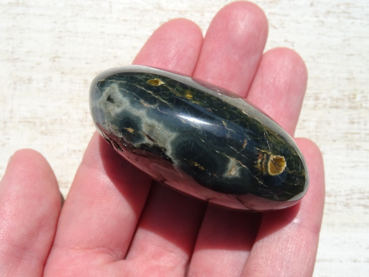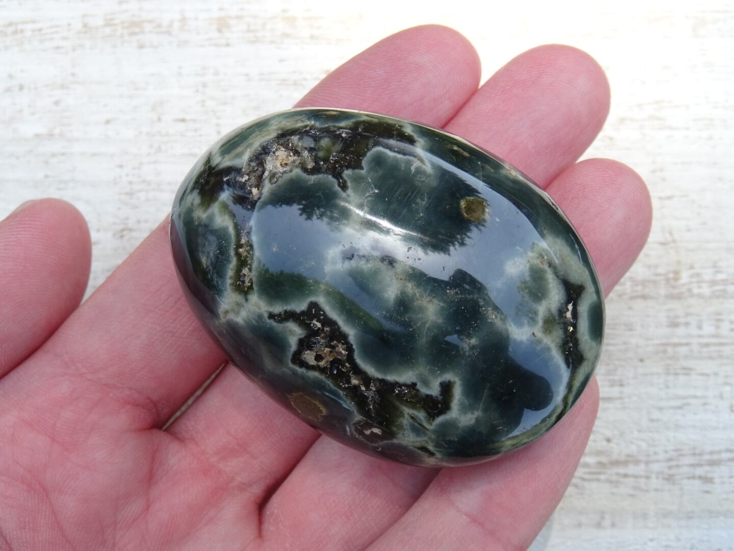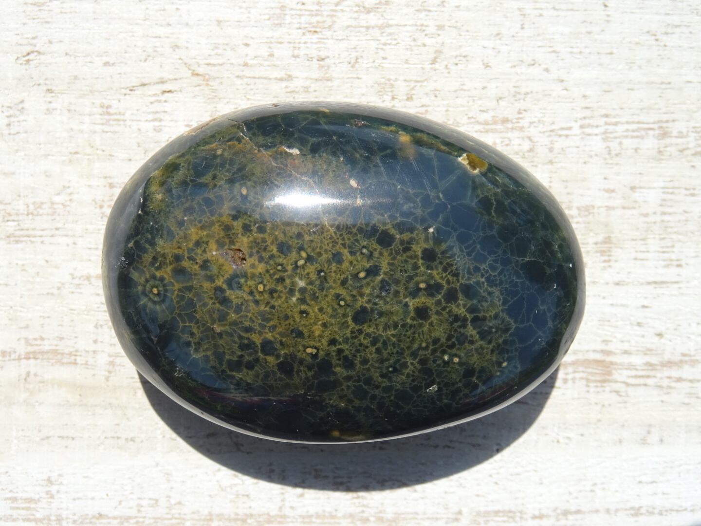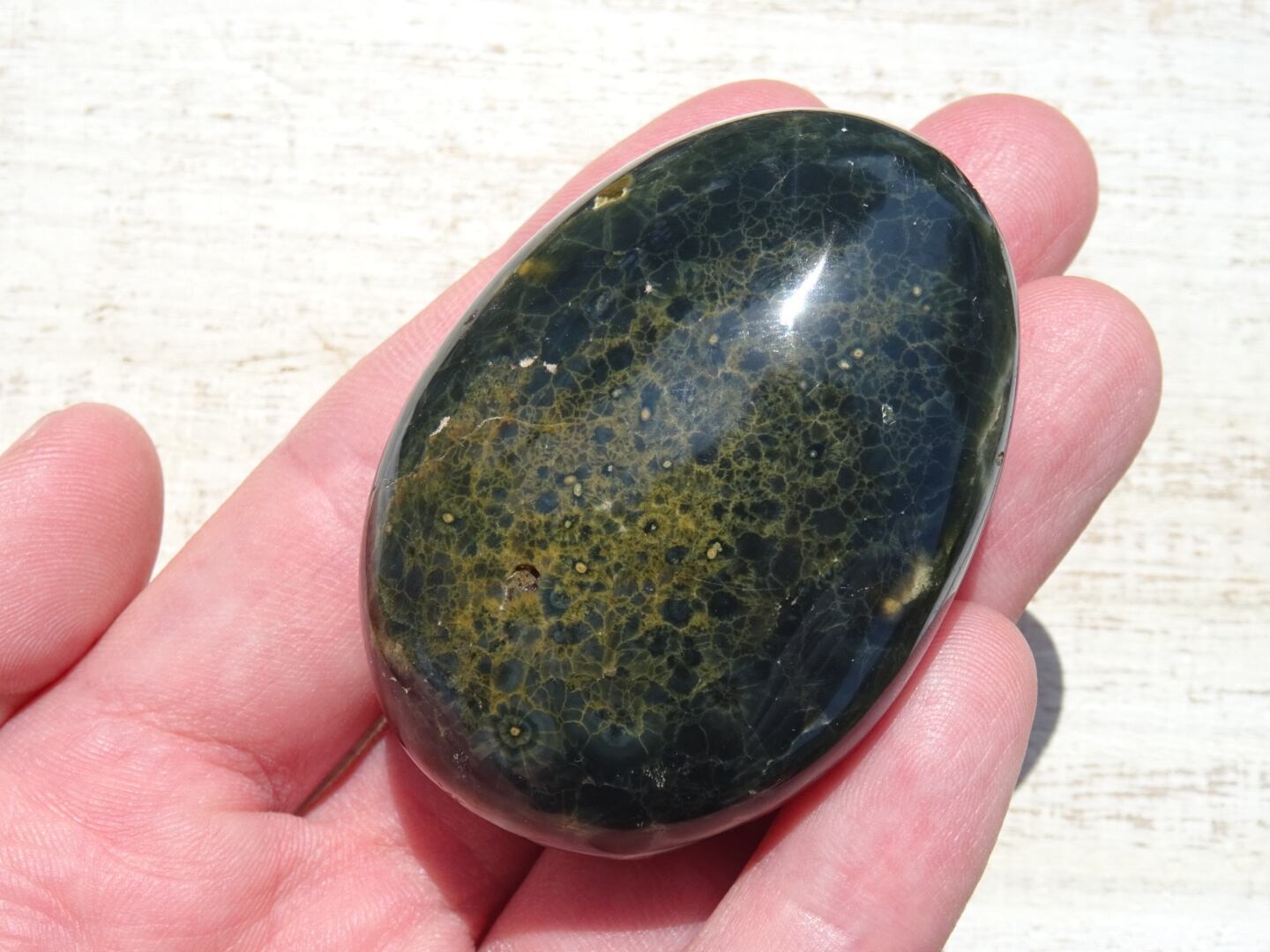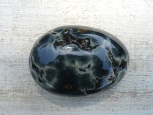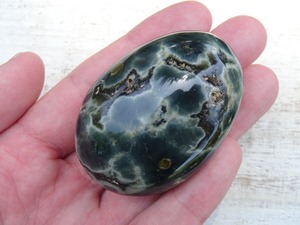 なんとなく有機的で不思議な模様で、オーシャンジャスパーはいつもさまざまな模様を見せてくれますが、こちらもダークカラーではありますが生き物のようなユニークな模様を見せてくれて素敵。じっと見入ってしまいます。