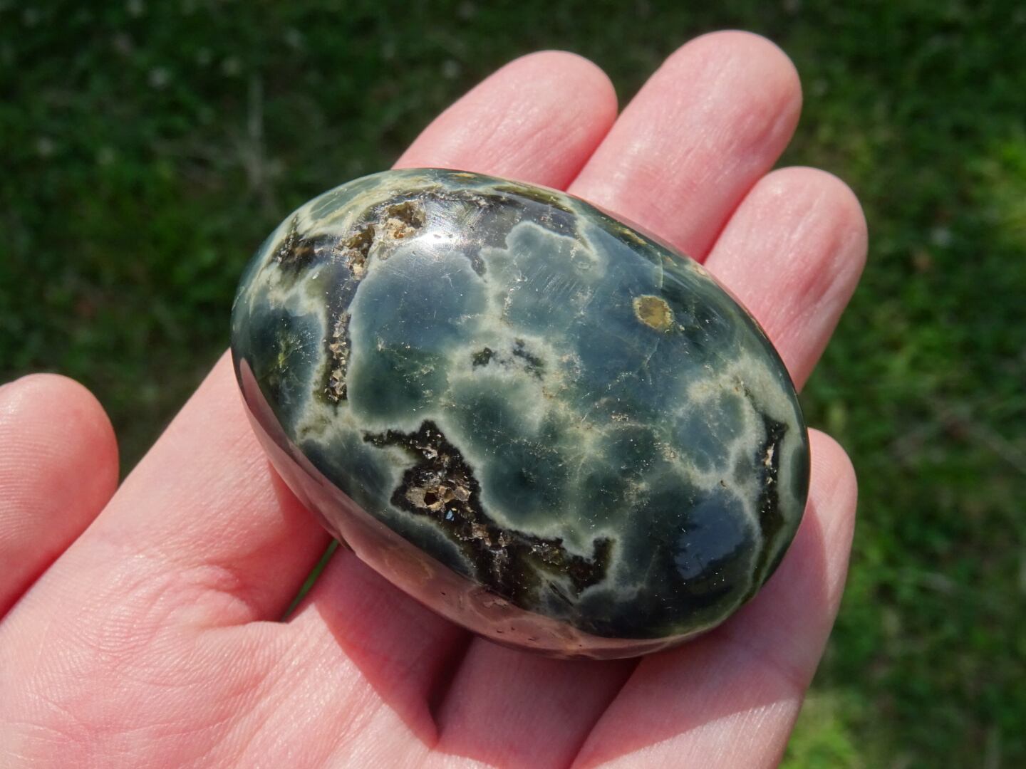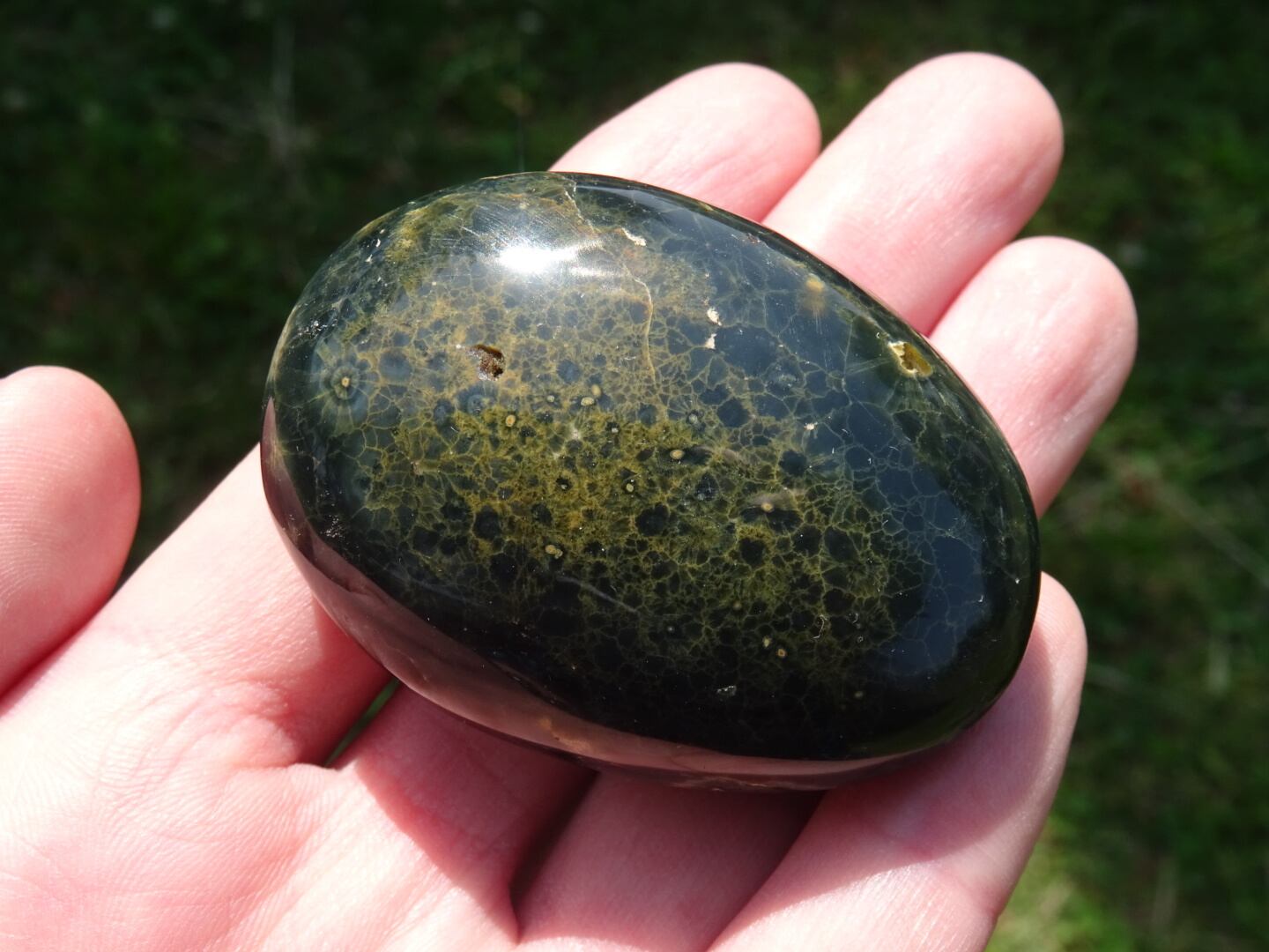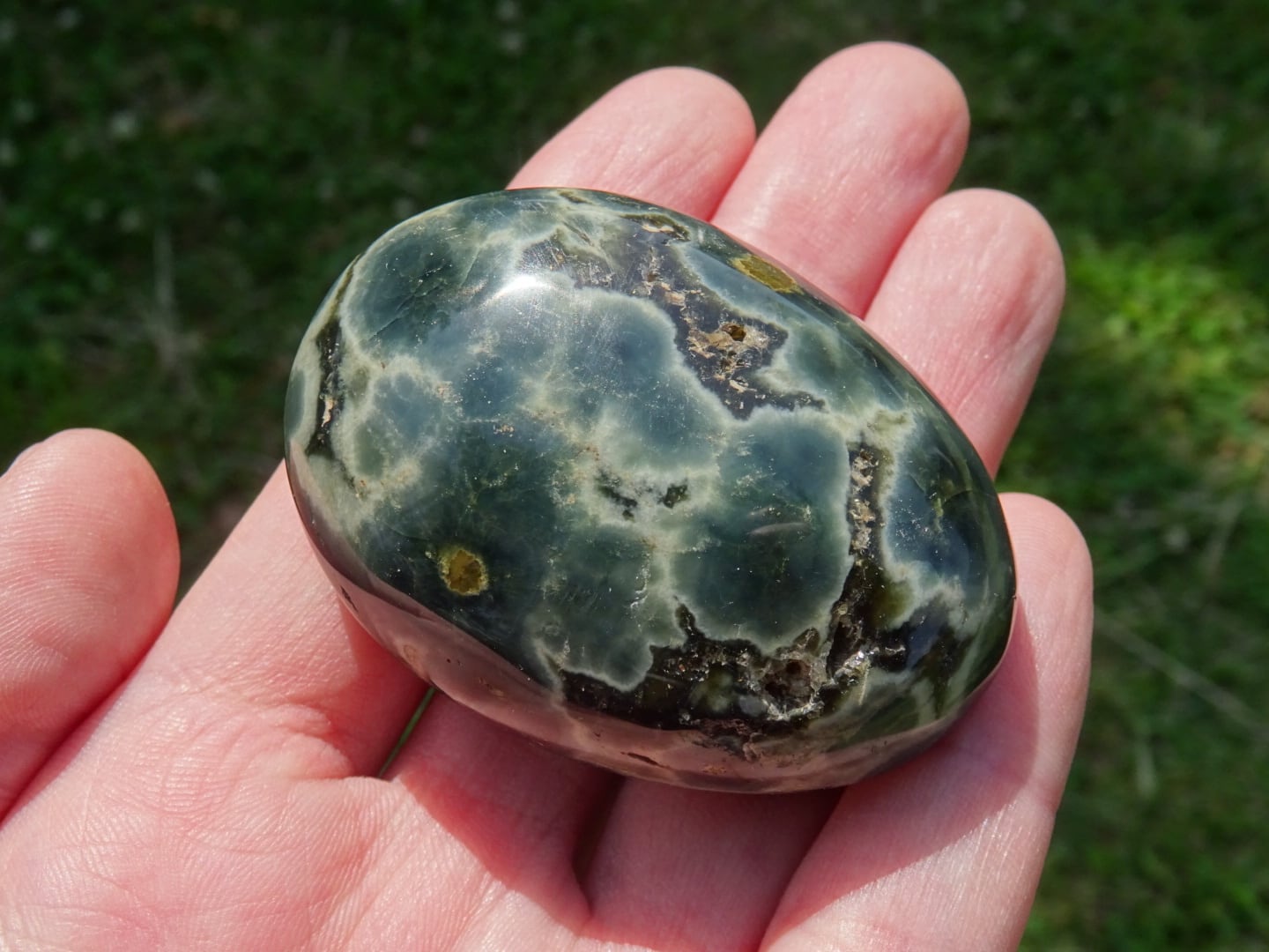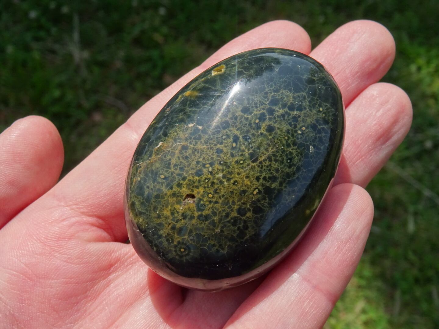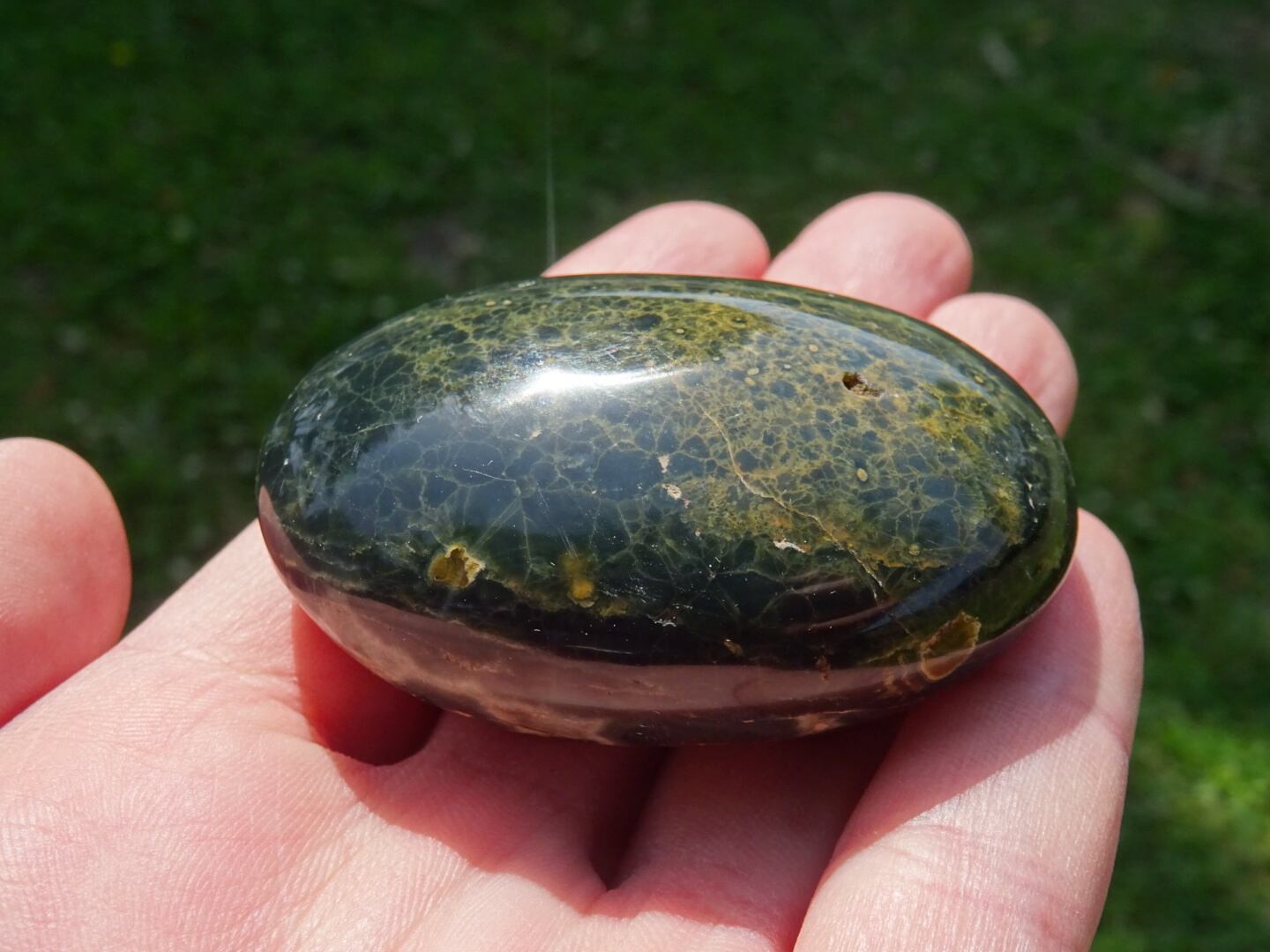 なんとなく有機的で不思議な模様で、オーシャンジャスパーはいつもさまざまな模様を見せてくれますが、こちらもダークカラーではありますが生き物のようなユニークな模様を見せてくれて素敵。じっと見入ってしまいます。