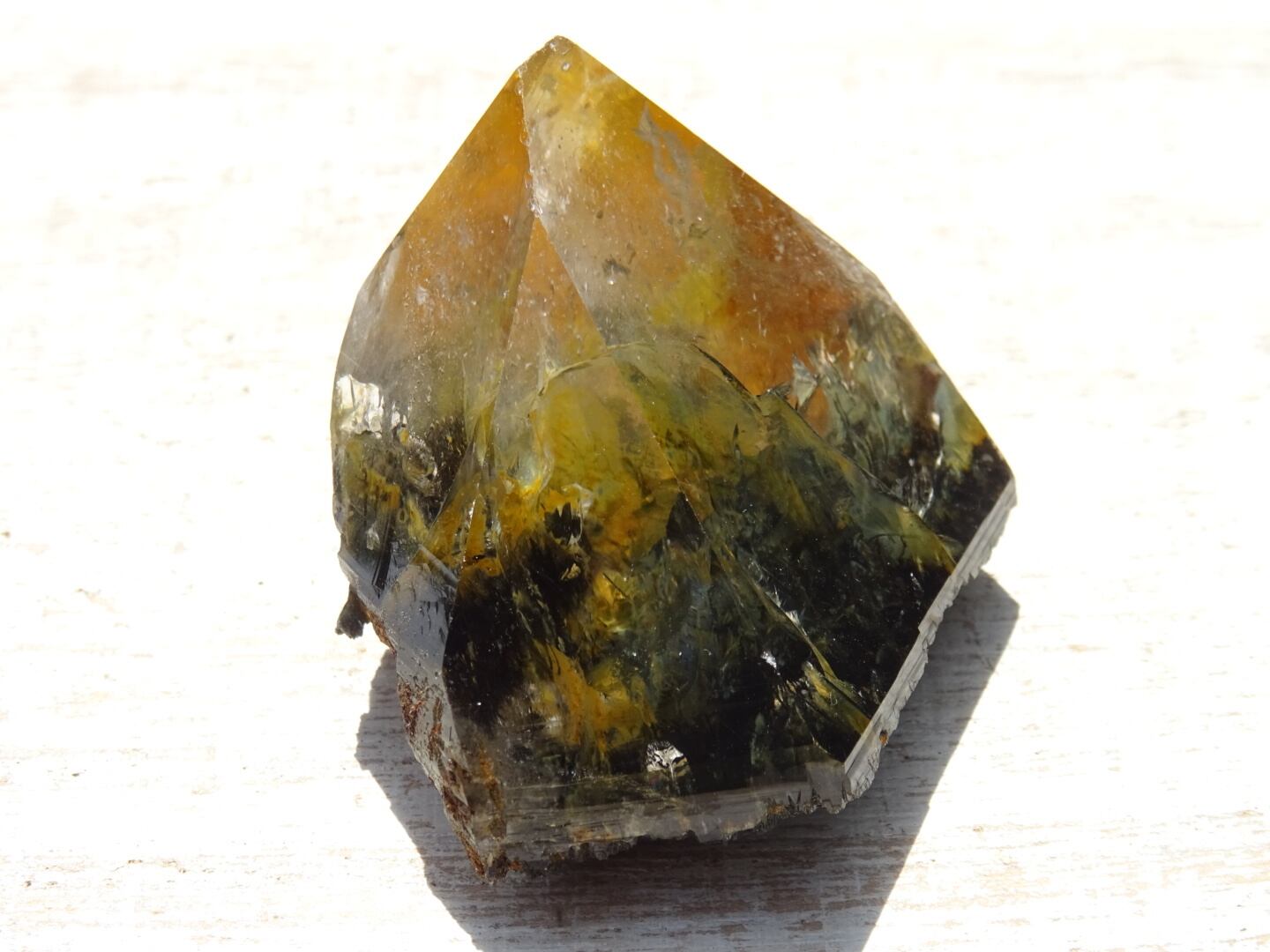 ほとんど針として結晶していないからか、こちらは激しさを感じるというよりただただ美しいです。。底面のブラックトルマリンのきらきらも綺麗。