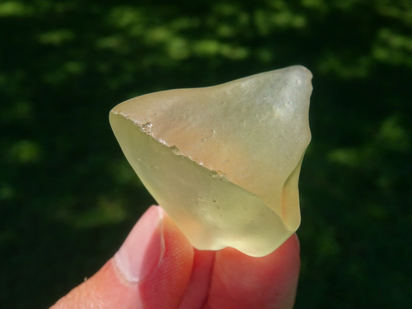 砂のような成分、クレーターのようなデコボコ、内包された気泡など、個体によってさまざまな姿を見せてくれるリビアングラス。