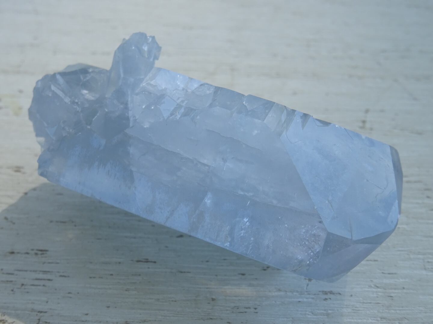 こちらはサイズ感もあり、セレスタイトらしいグレイッシュブルーな色合いも素敵。しっかりとファセット面も残っていて照りがあります。