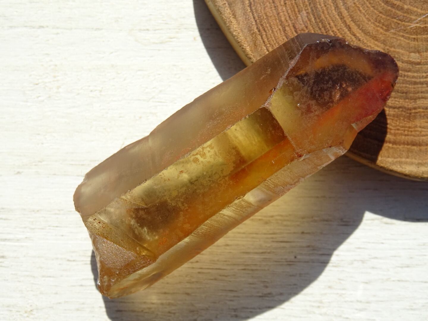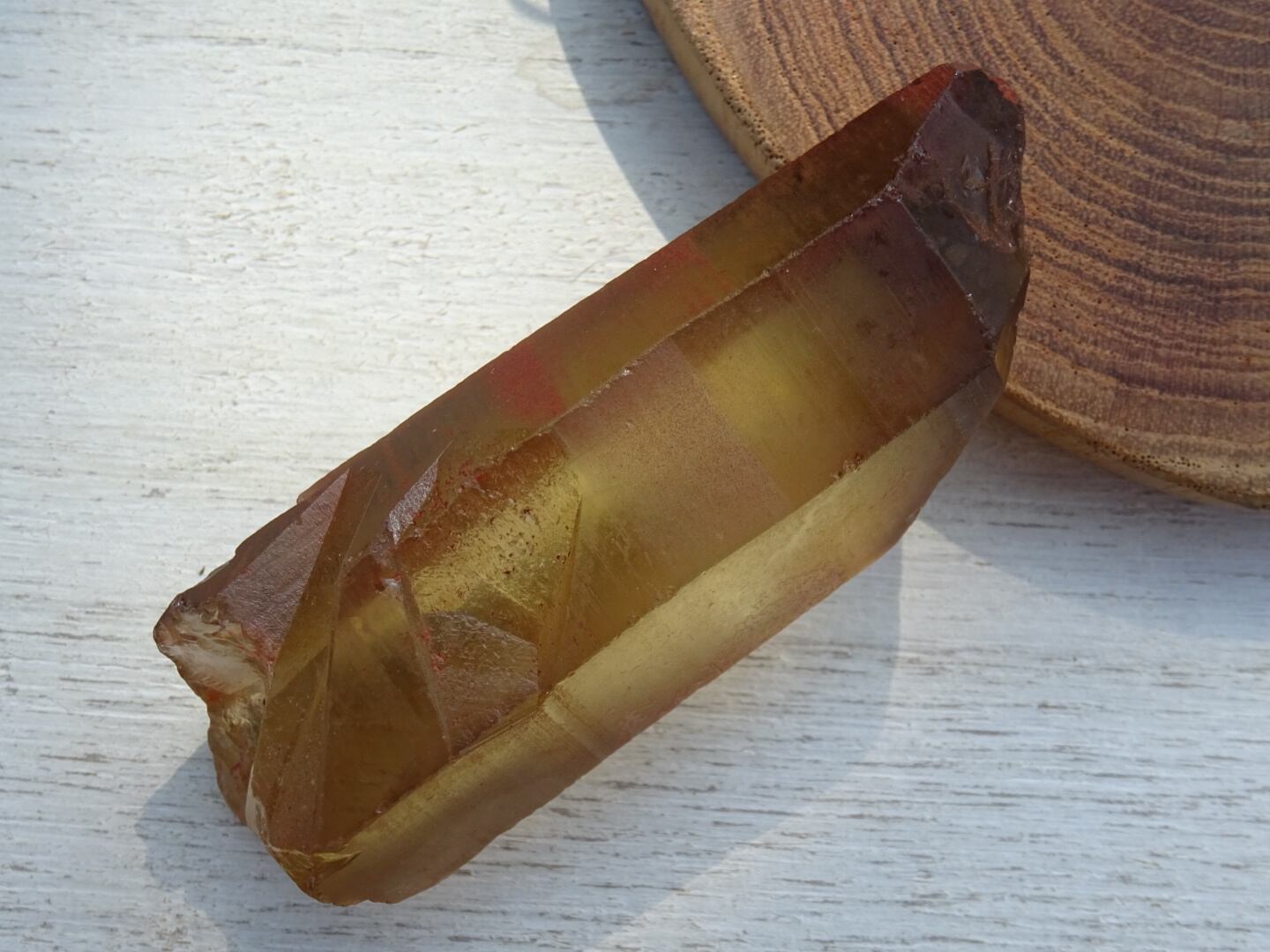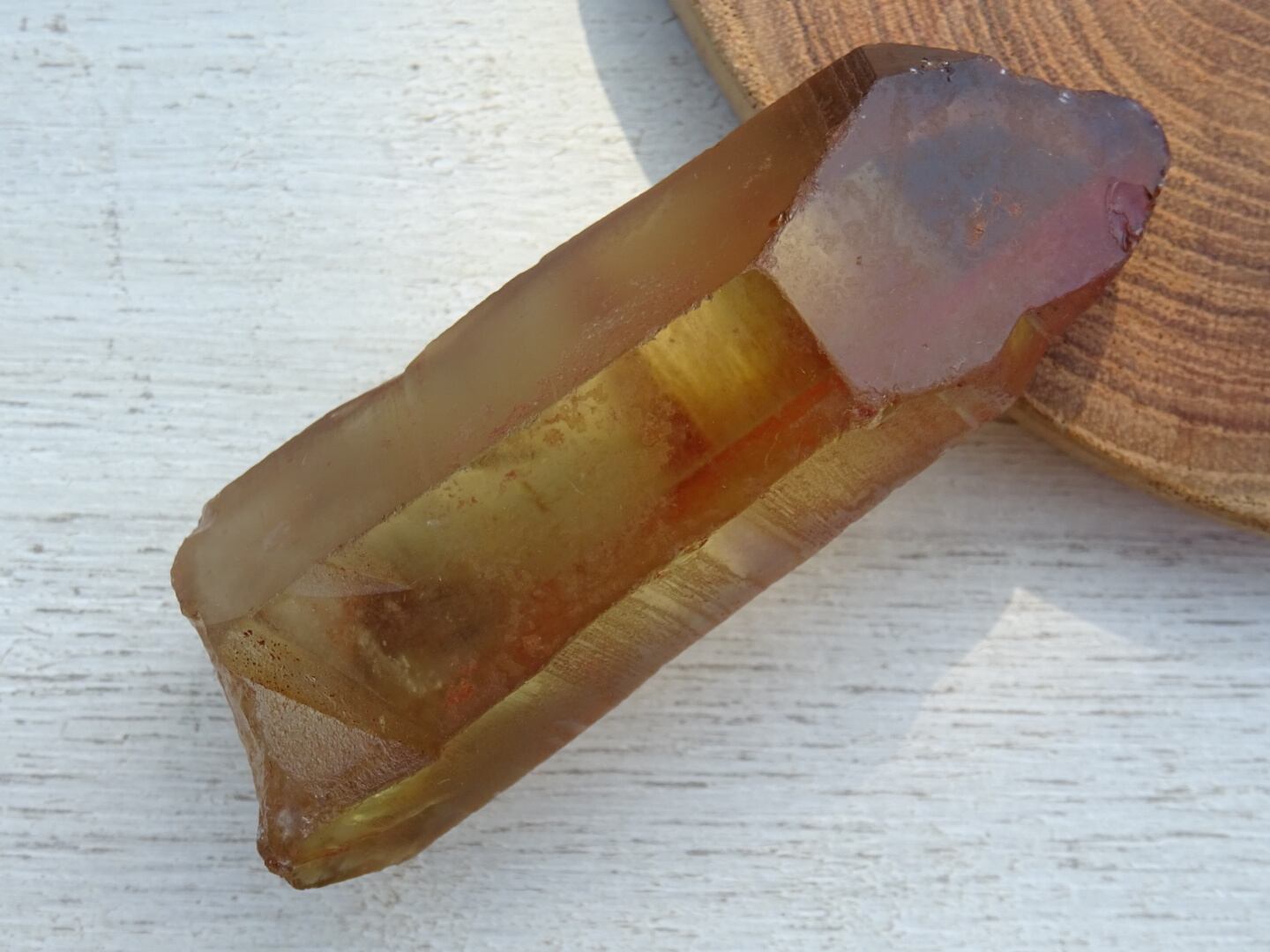 こちらはザンビアシトリンらしい濃いめの色合いもよく出ているのですが、+赤茶けた鉄分の付着でさらに濃度が増している印象。