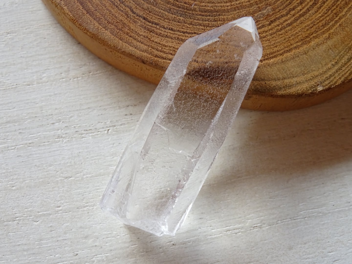 一面おきに刻まれた蝕像痕、力強いクリアさ、石肌の瑞々しさ、そしてビジョンクォーツらしい美しい結晶パターンがよく出ているものをセレクトしました。