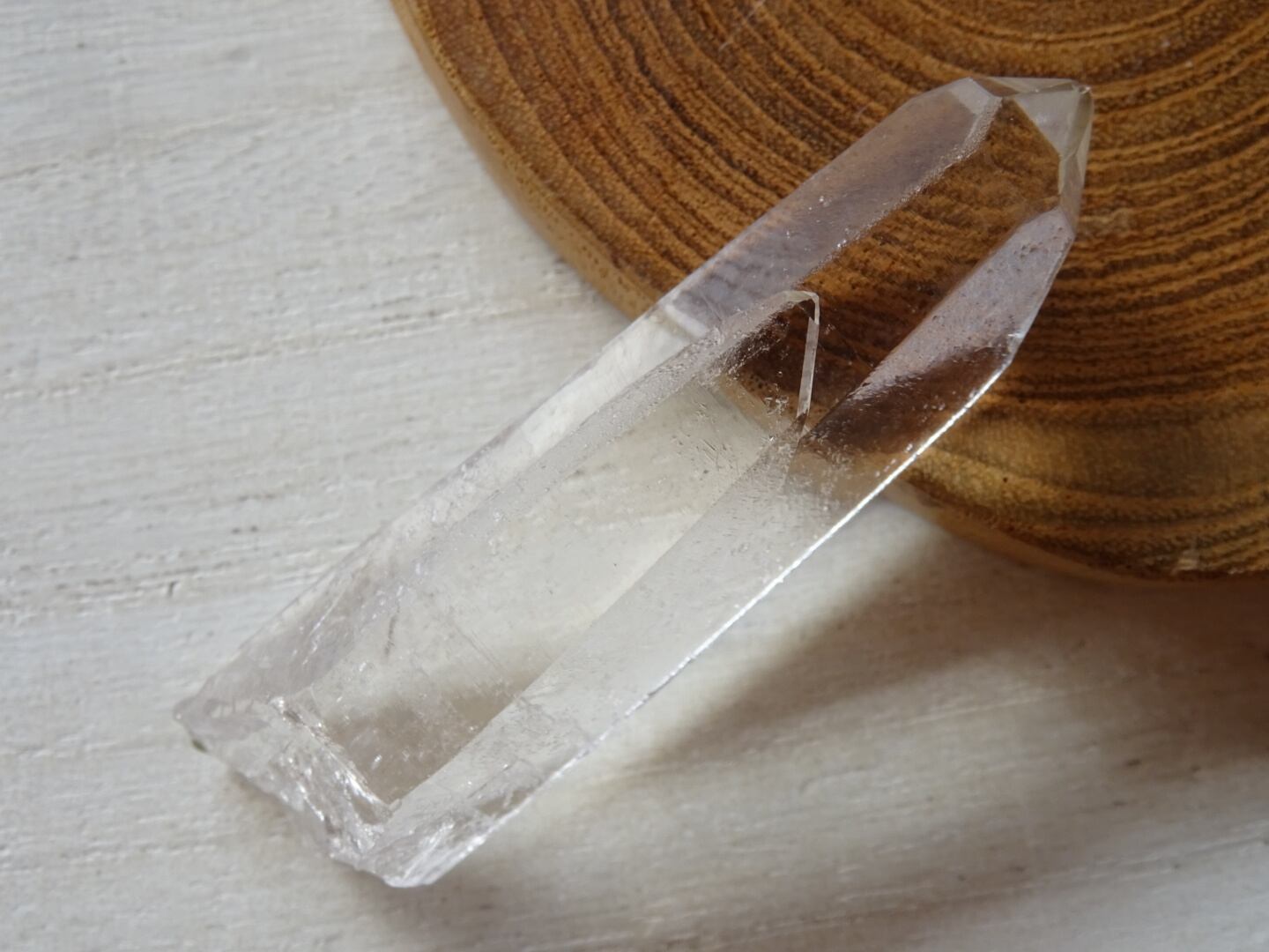 一面おきに刻まれた蝕像痕、力強いクリアさ、石肌の瑞々しさ、そしてビジョンクォーツらしい美しい結晶パターンがよく出ているものをセレクトしました。