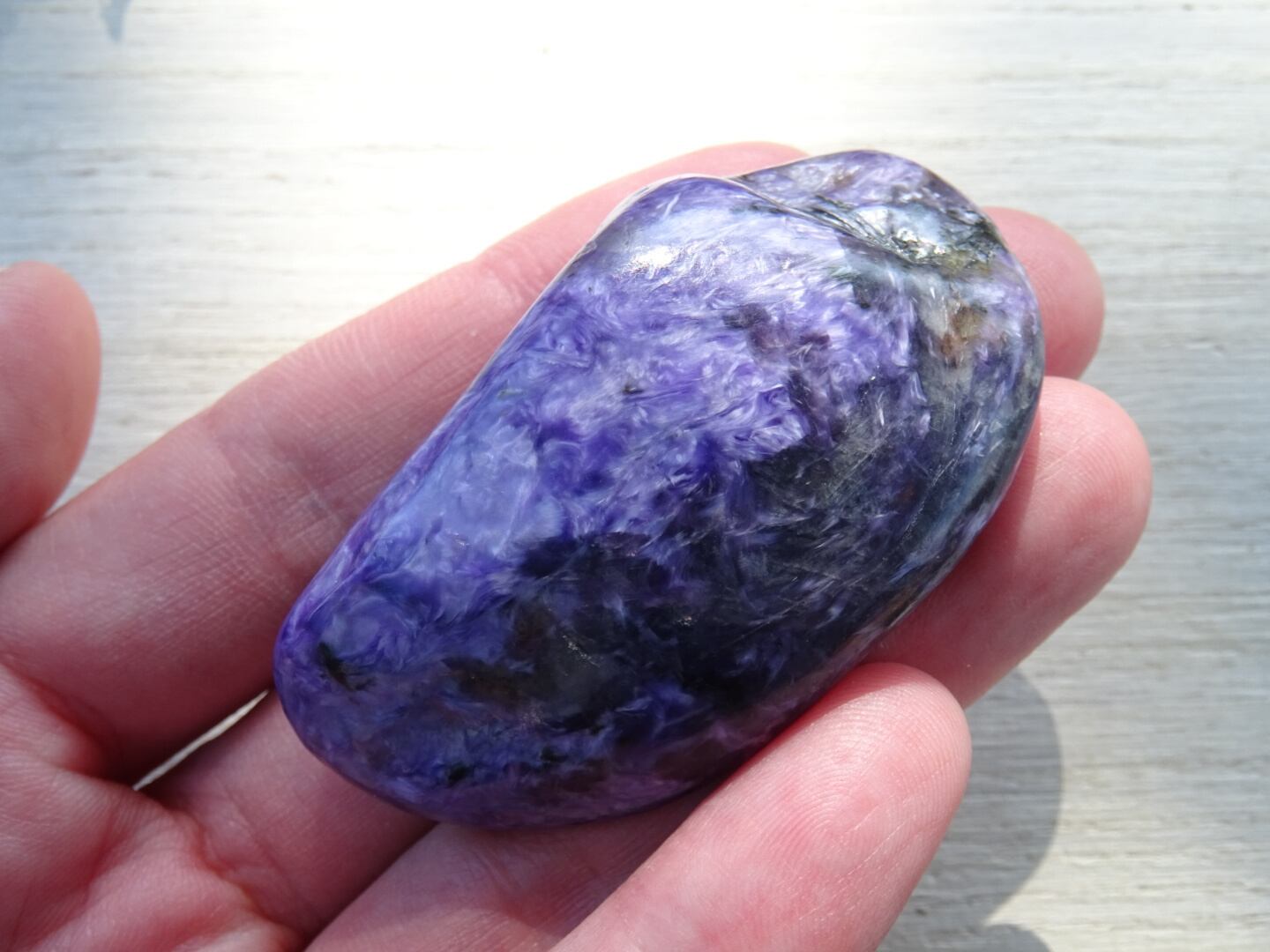 この色は人体の頭頂部分に位置する第7チャクラの色でもあり、霊性や精神にかかわるもの。チャロアイトはやはり精神の深みへ作用してくれる石なのではないかな。