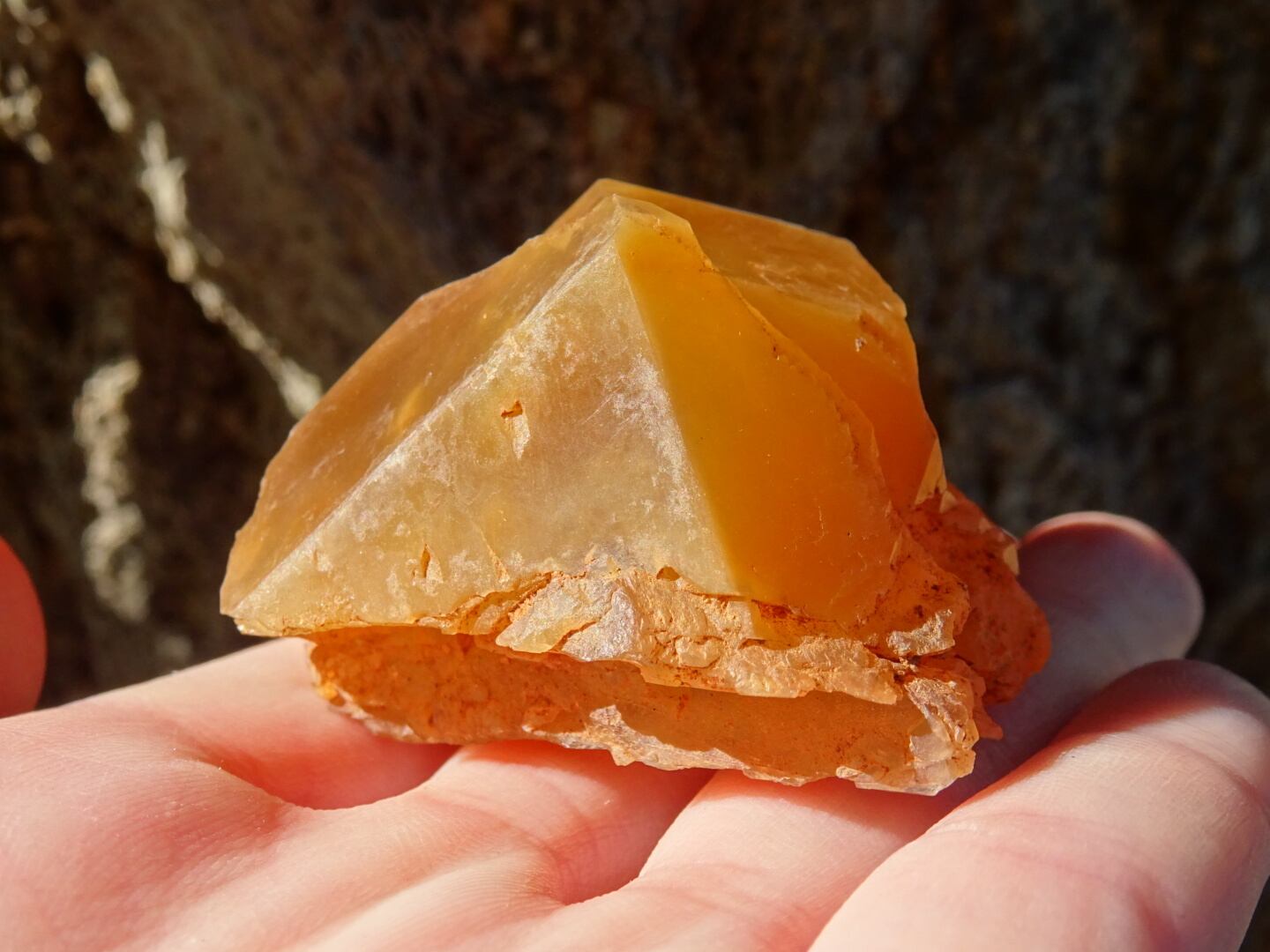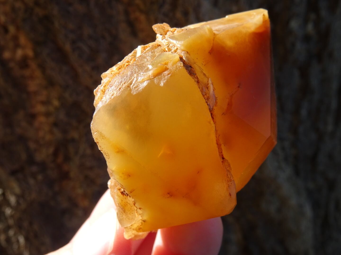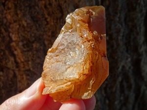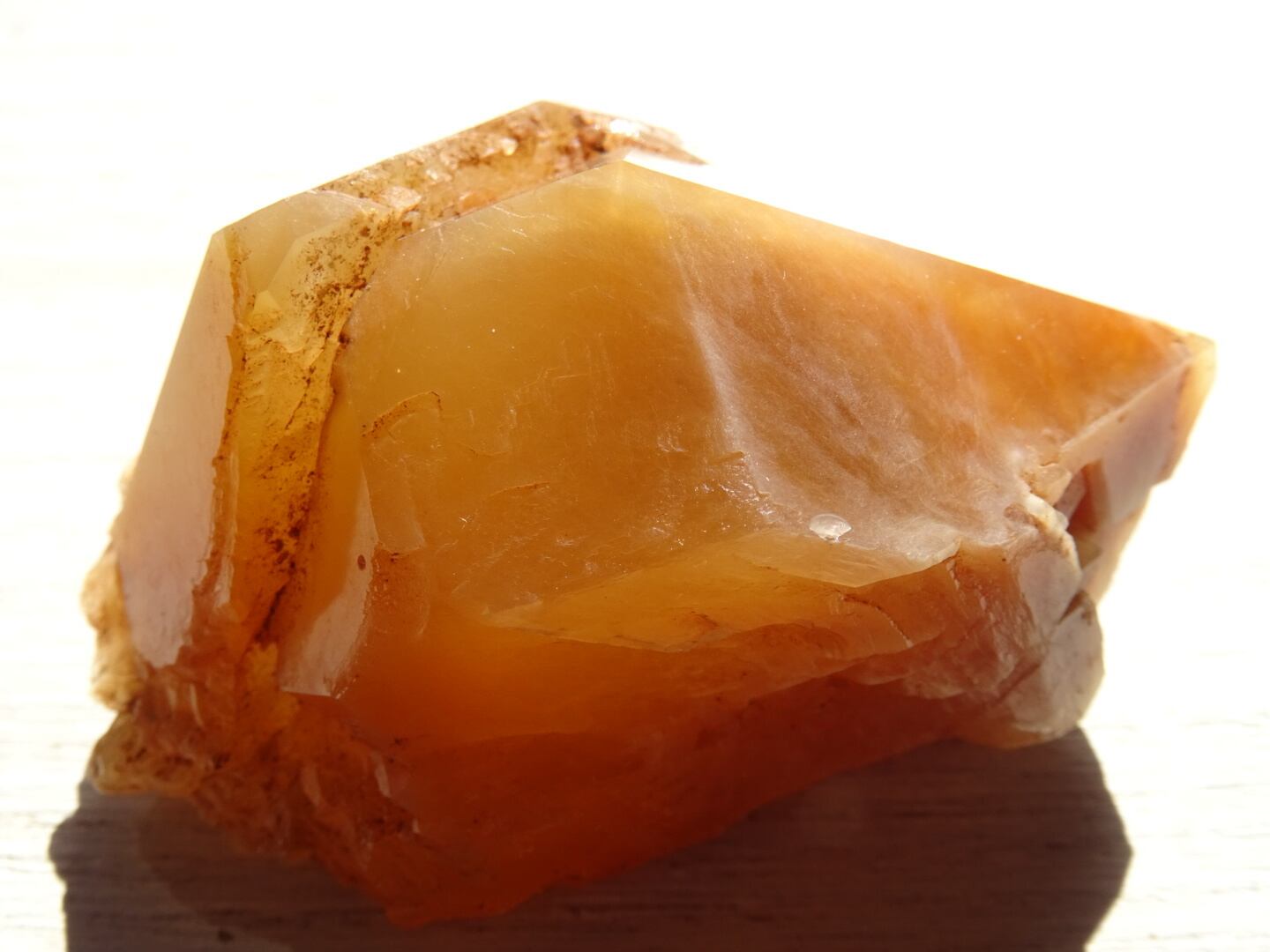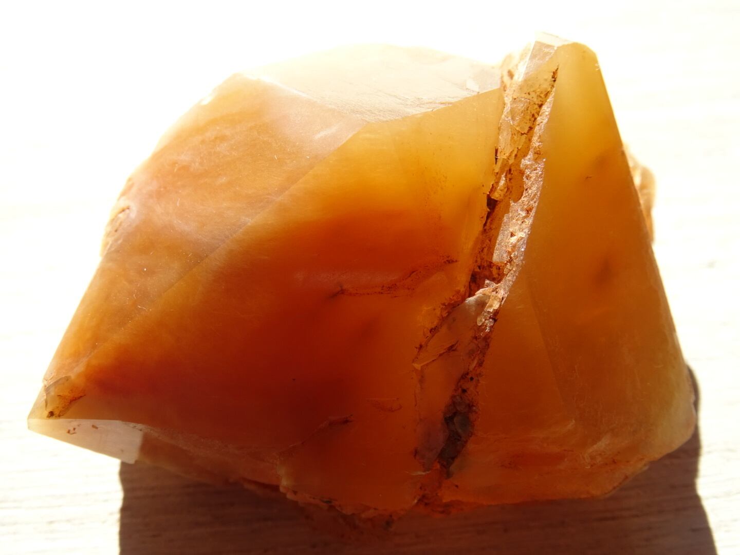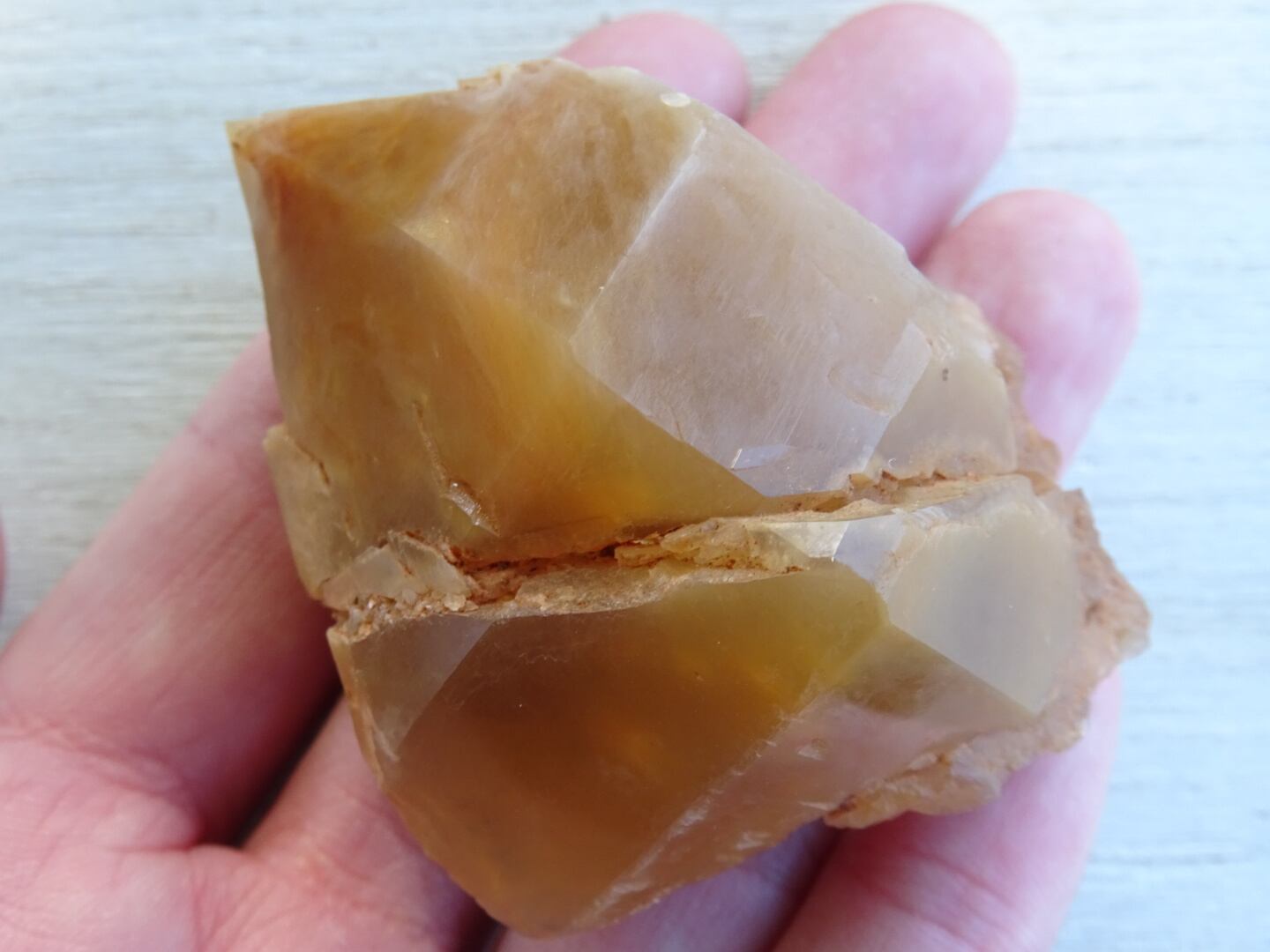色合いも、ザギらしいキャラメルカラーで本当に素敵。特に光に透かした時の表情が。部分的に淡い透明感があるのですが、色味が濃厚に出ている部分は細かな繊毛状のルチル(エンジェルヘア)と思われる鉱物がもっさりと密集しています(基本的に全体的に散らばっているような印象も)。