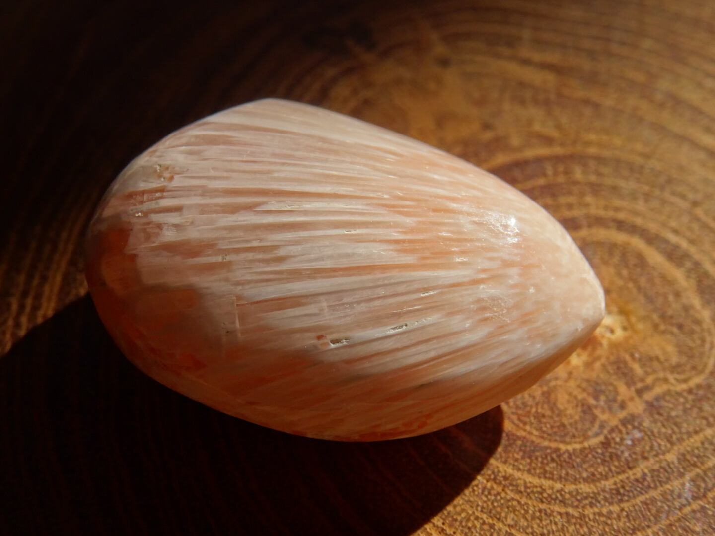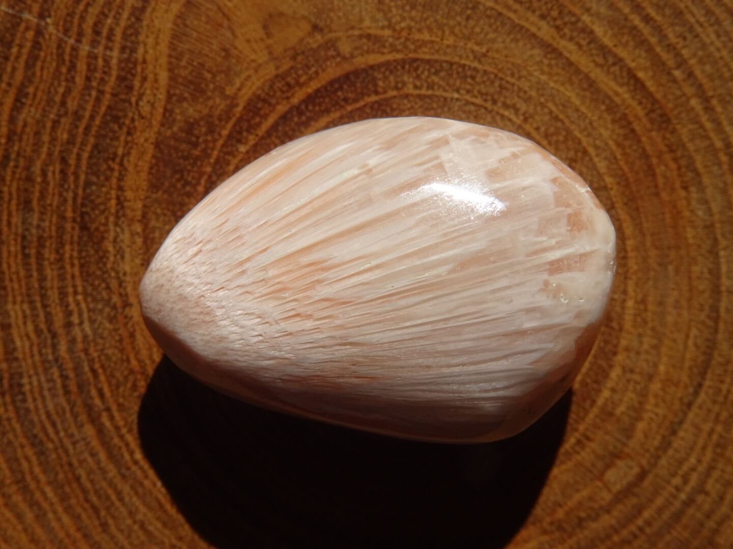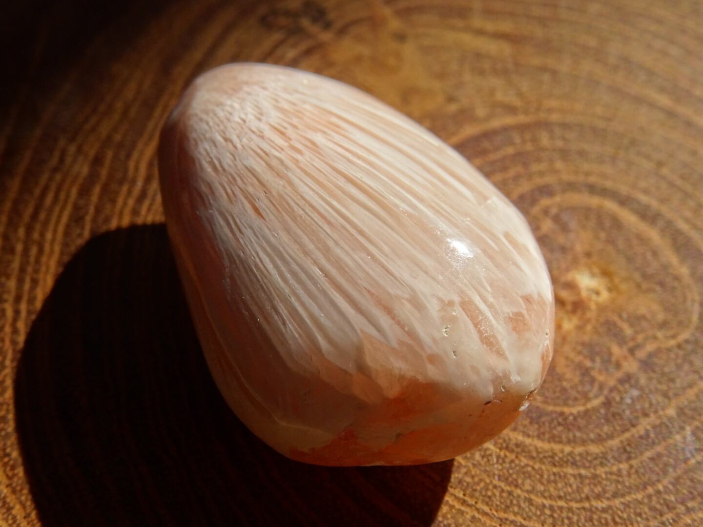 月のクレーターや、翼のようなホワイトの色模様。ピンクスコレサイトは、そこにやさしいコーラルカラーが挿しています。傾けるとシラーのような光をサっと渡らせてくれるのですが、こちらは動画でご確認ください。