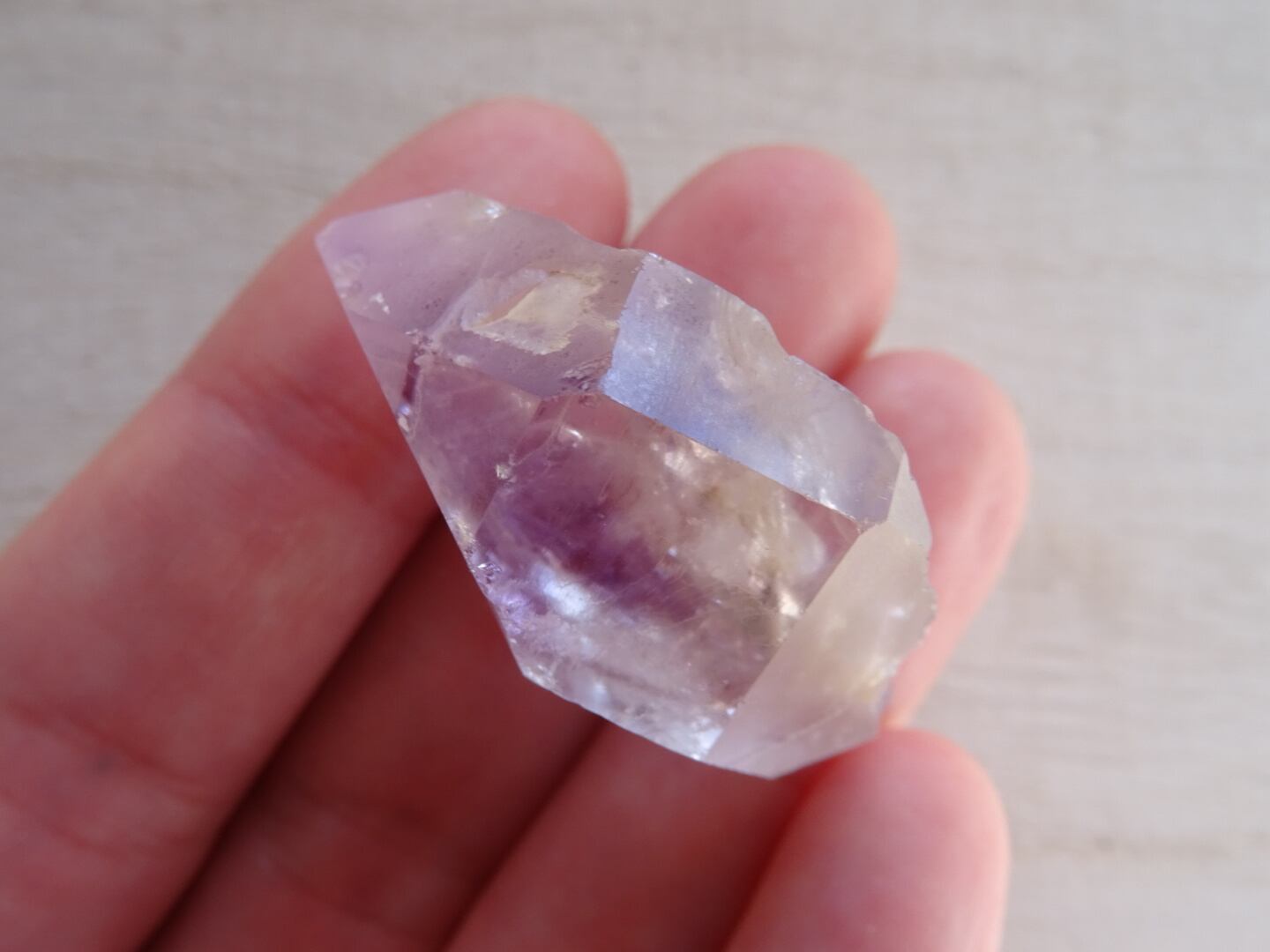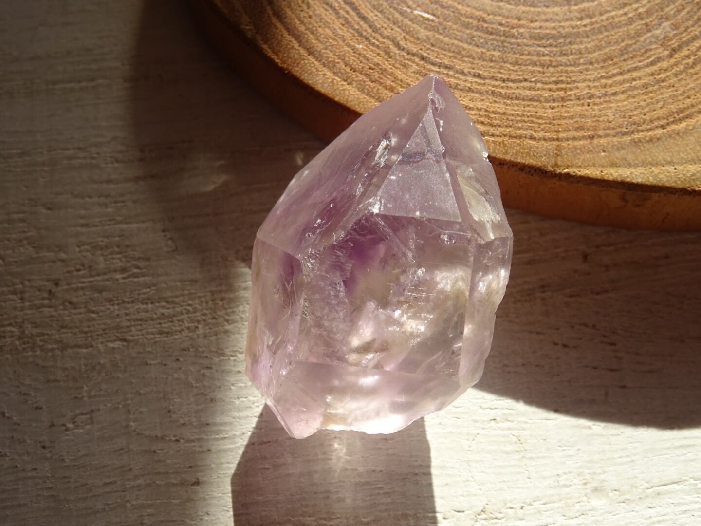 水入りというのも魅力ですが、なんと言ってもこの結晶形、そして優し気なアメジストの色合いが美しいです。こういったアメジストは、眺めているとどこか優美なきもちになりますね。