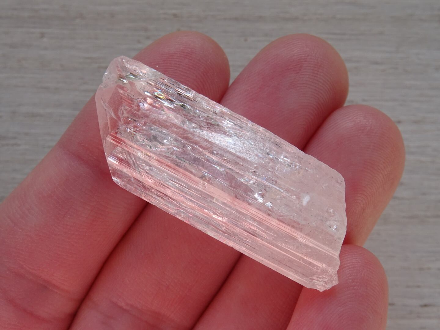 きらきらした眩い透明感の中に、白銀の光を反射してくれるダンビュライト。縦方向に刻まれた条線が特徴で、キリリとした印象の石です。(見た目は水晶に似ていますが、組成は異なります)