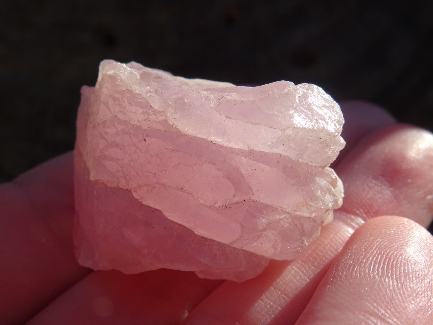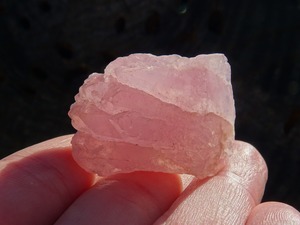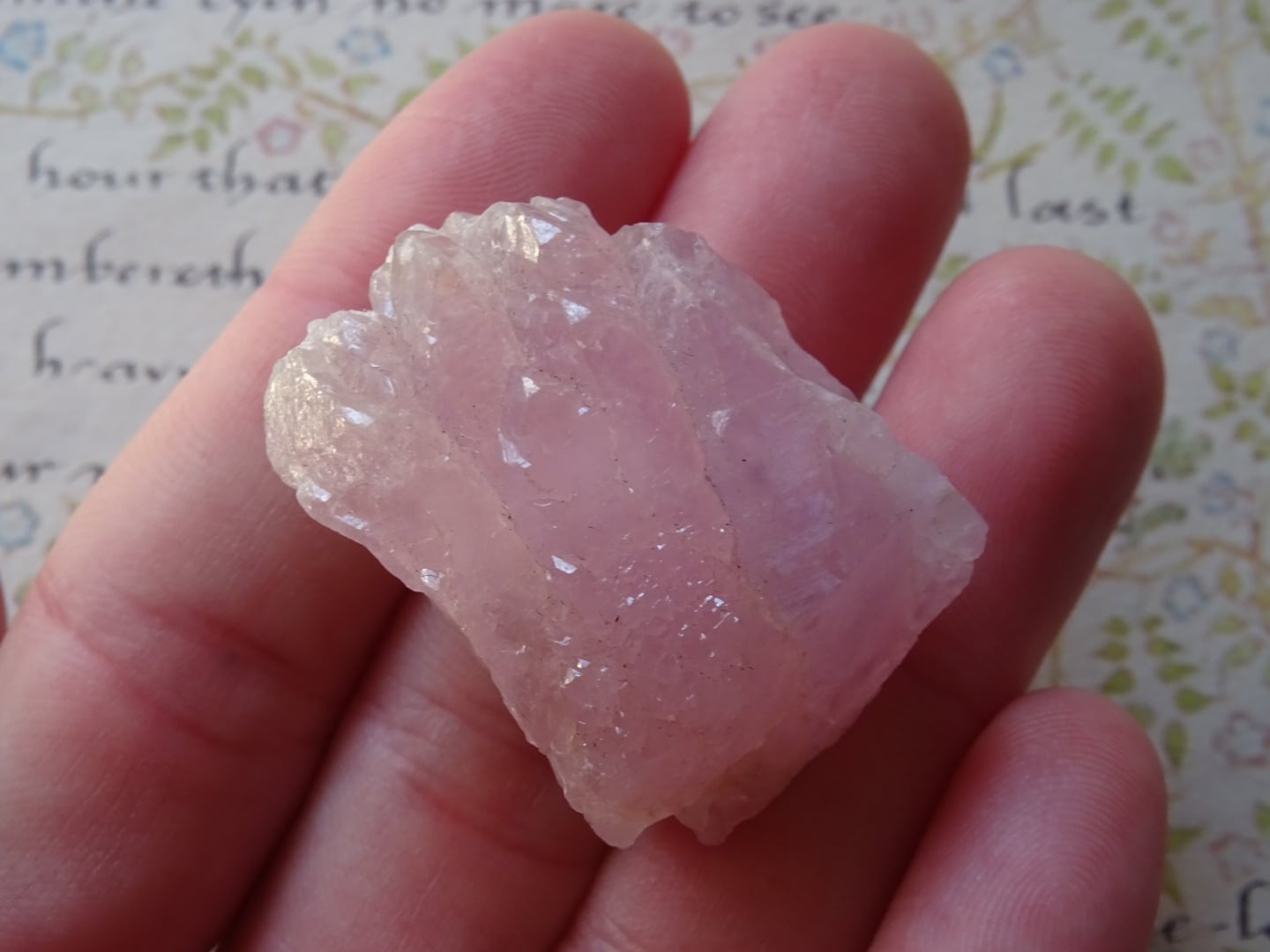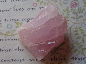 こちらはローズクォーツの結晶としてはかなり大きめで、色合いはピンク…というよりもラベンダーカラーに近いかな?という印象です。