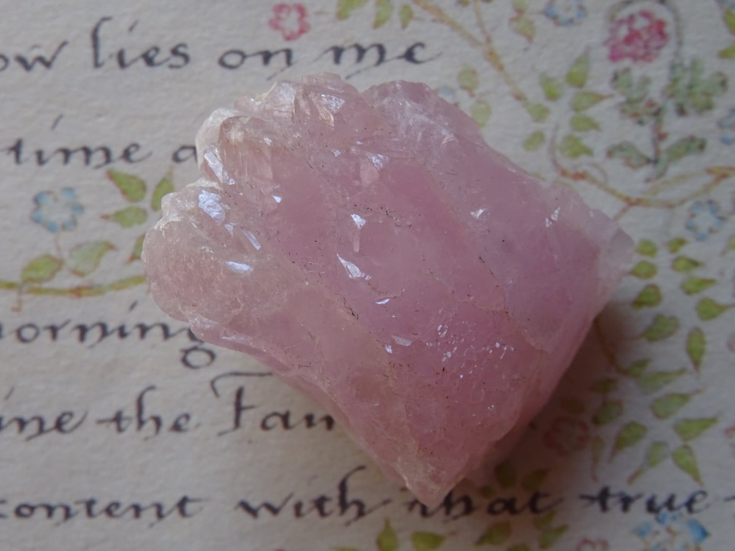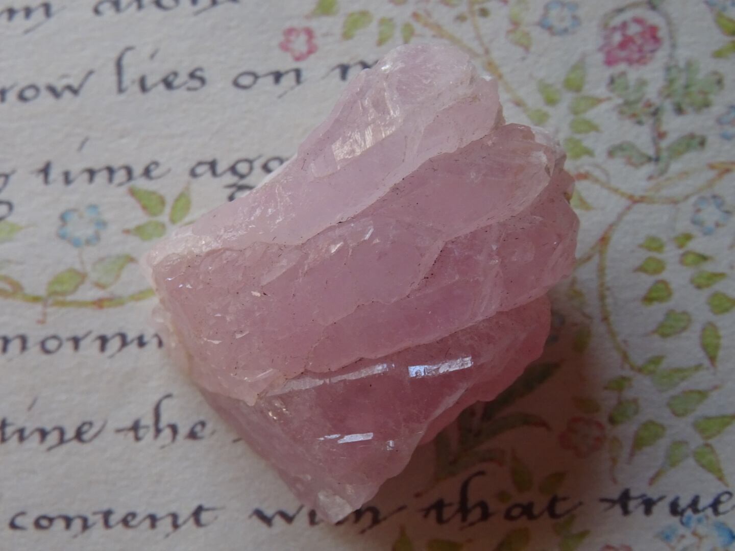 私たちがよく知るローズクォーツは通常、塊状のラフがほとんどで、このようにしっかりと結晶することは非常に稀です(流通量もとても少ないです)。