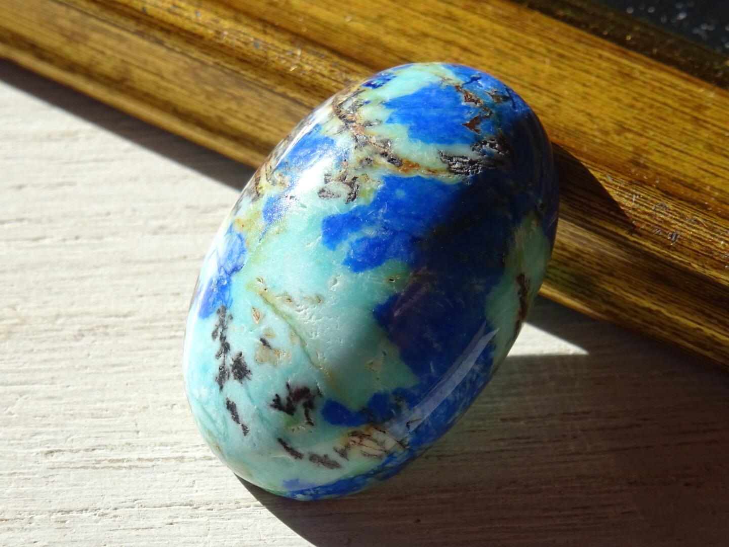 アズロマラカイトはお久しぶりの登場ですね。セラーの話ではバライトの鉱液が沁みこんだ珍しいものなのだとか。