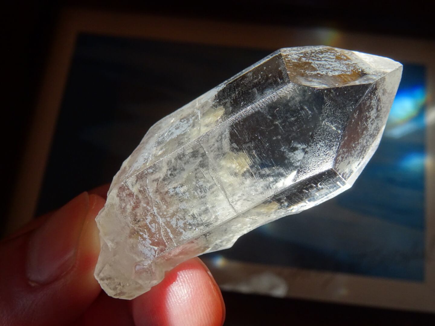 N0.1~2と比べると、この石は「水を感じる」というよりもただただこの美しい結晶面から放たれている、まっすぐな光の力強さ、「光の太さ、軸」のようなものを感じます。