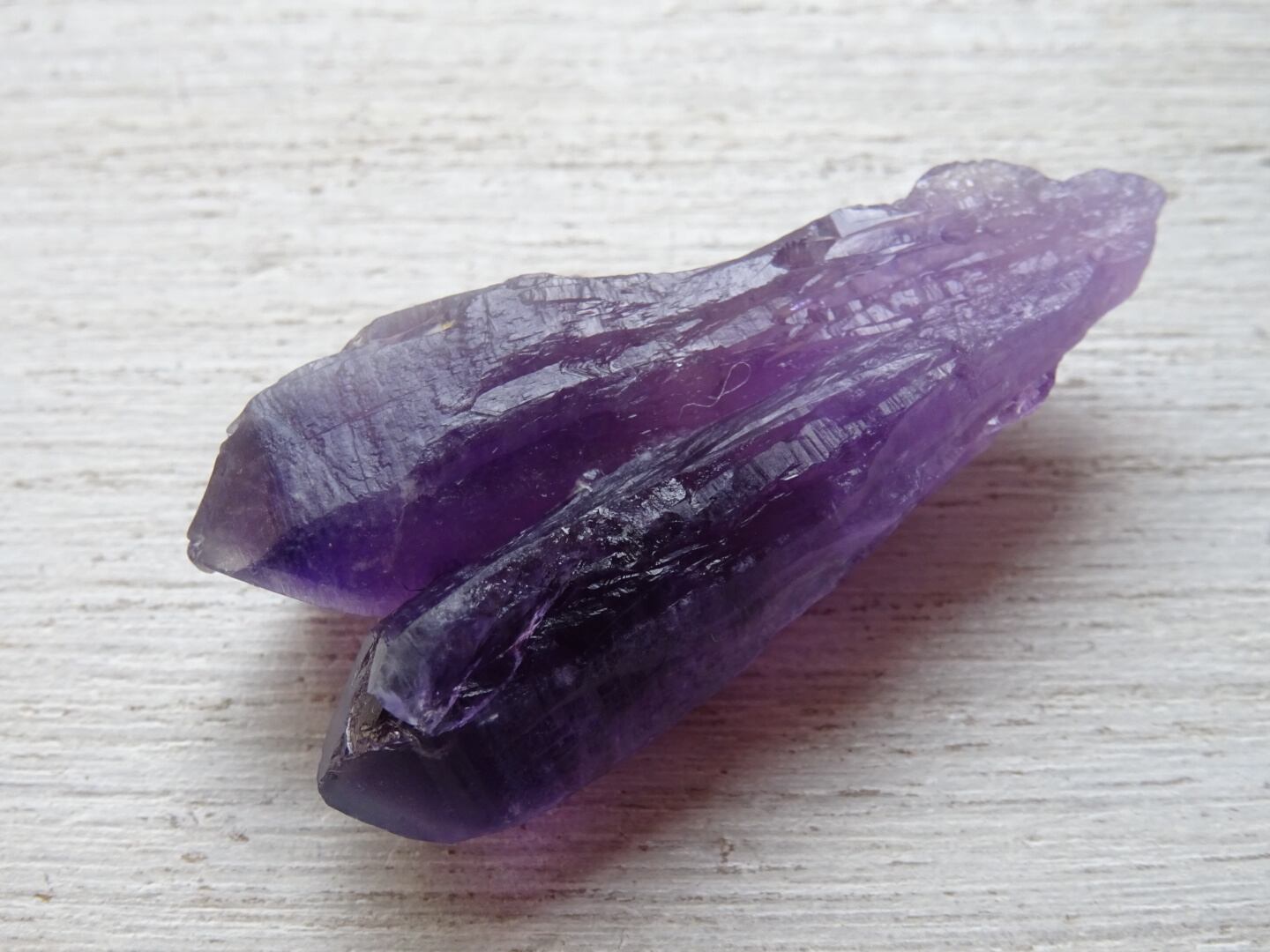 こちらはハートのように仲良く並んだツインのツツアメジスト。前回と同じく濃厚なパープルカラーで、光に透かすととても美しい表情を見せてくれます。