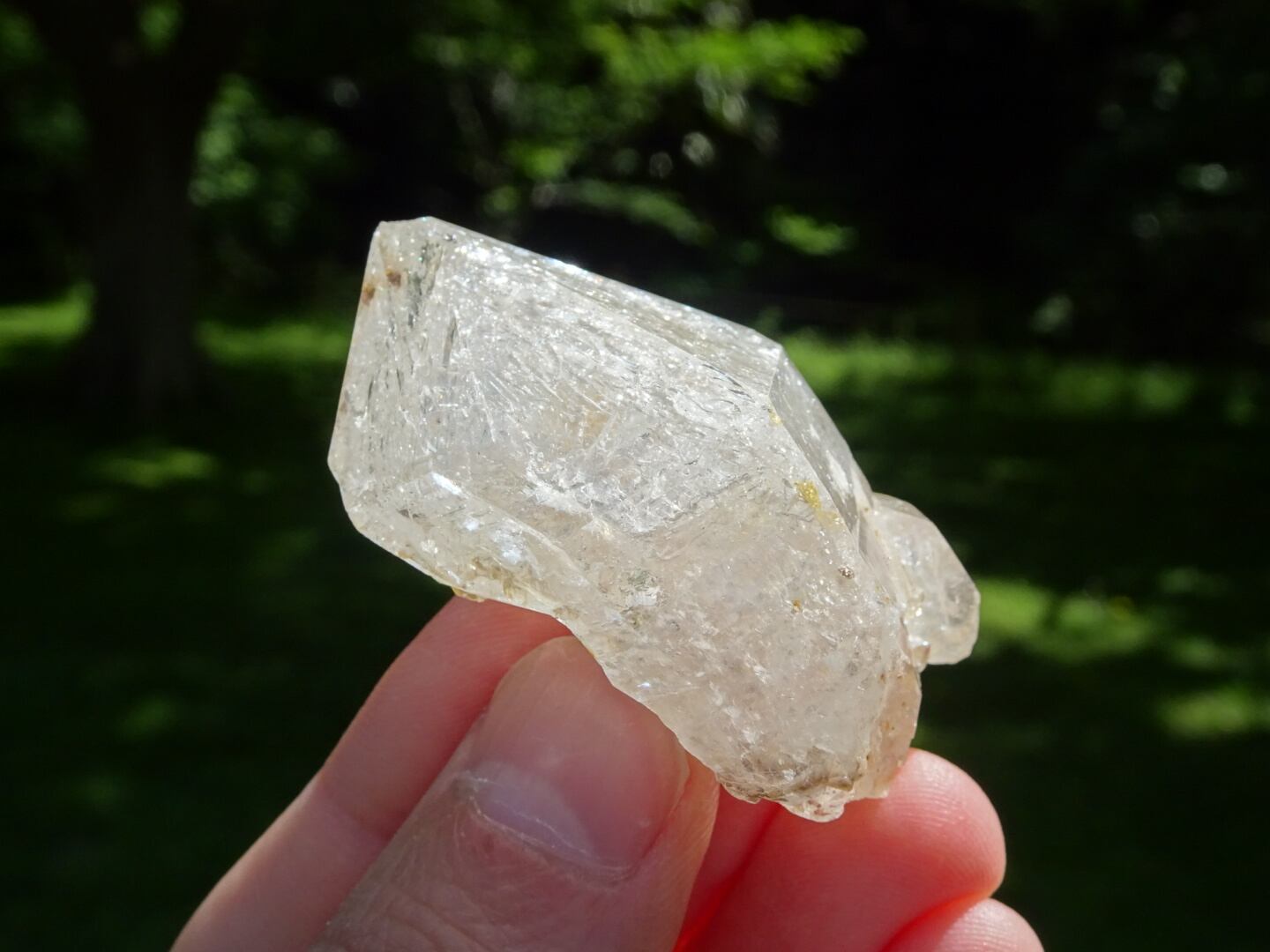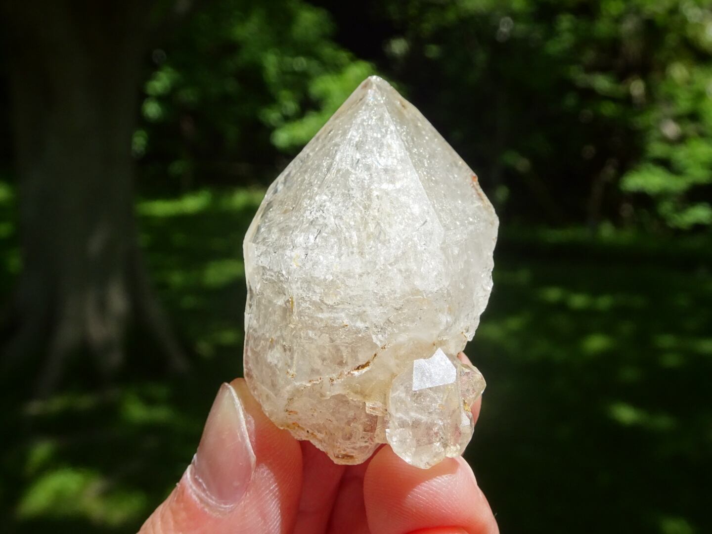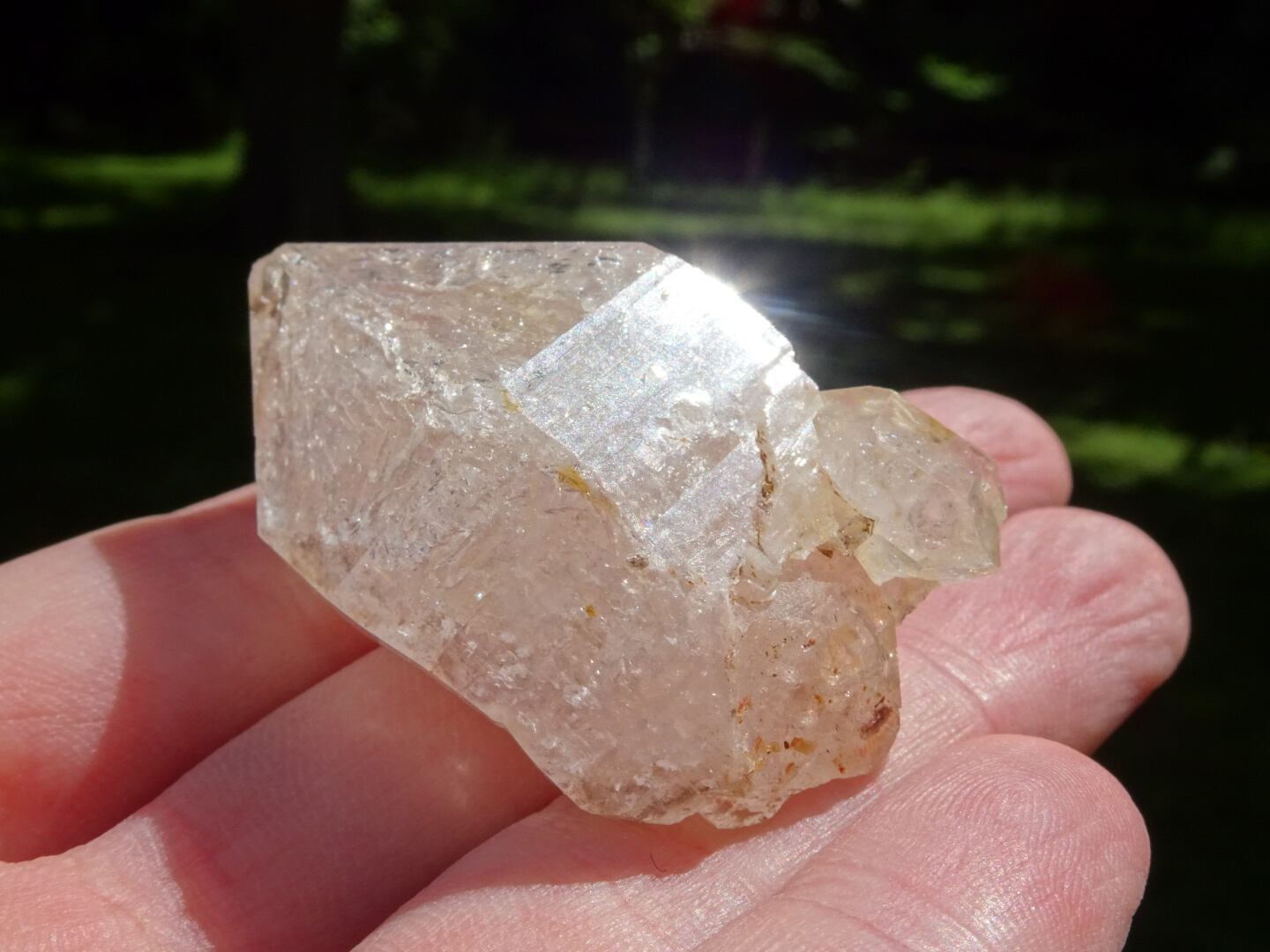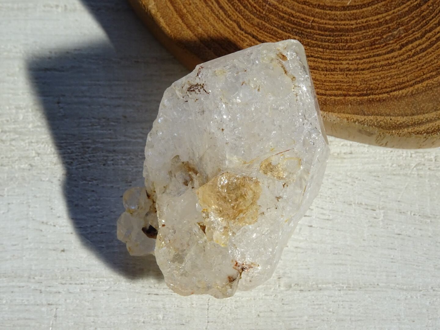 薄い氷を張り巡らせたような結晶構造、石肌の照り、きらきらで満たされているホワイトの姿、淡い虹のプリズムがとても綺麗です。