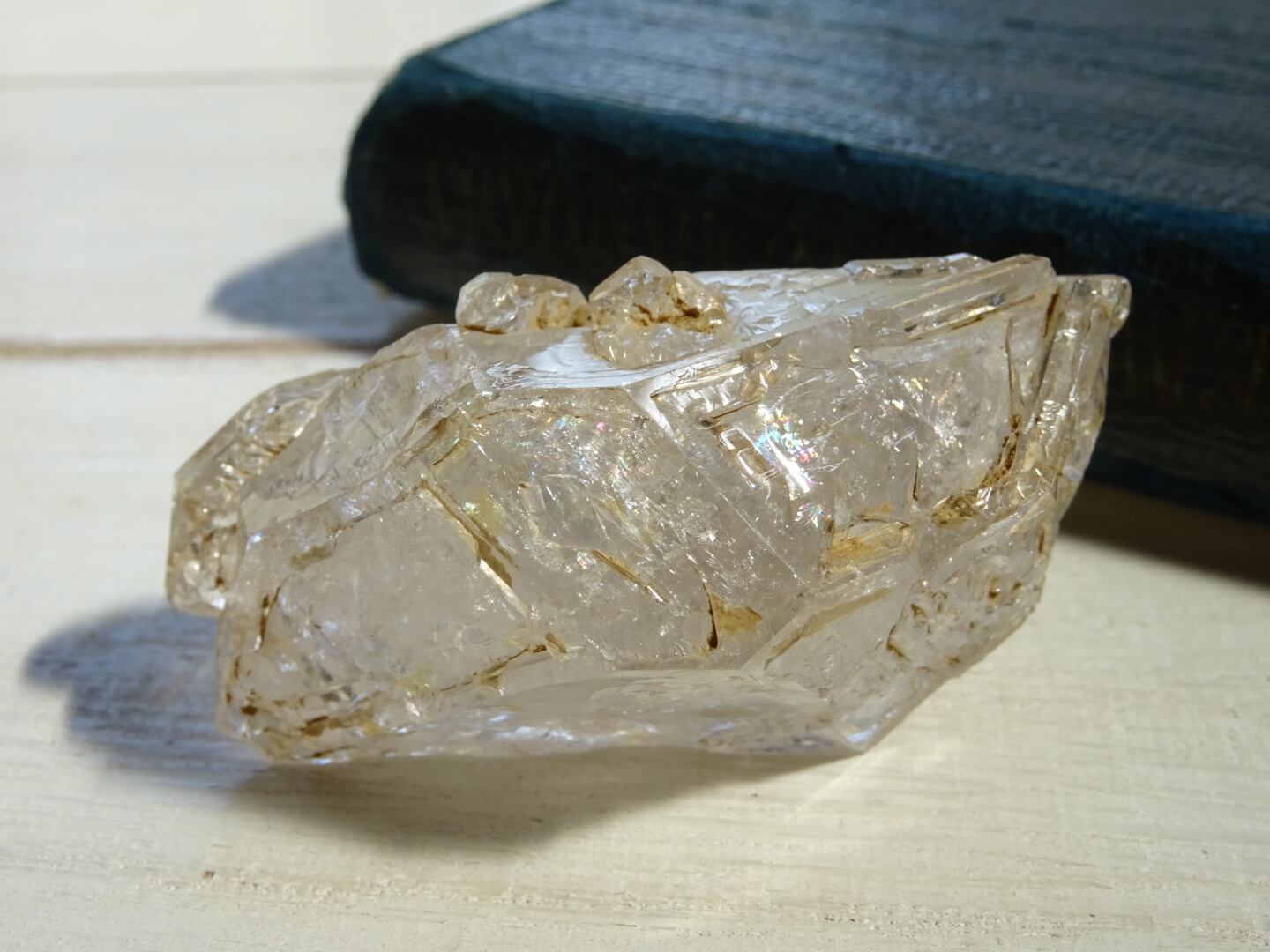 きらきらの石肌、スケルタル(骸晶)、Brownのインクルージョン(泥鉱物かな?)、部分部分から見せてくれる虹など、見ごたえたっぷりな石です。