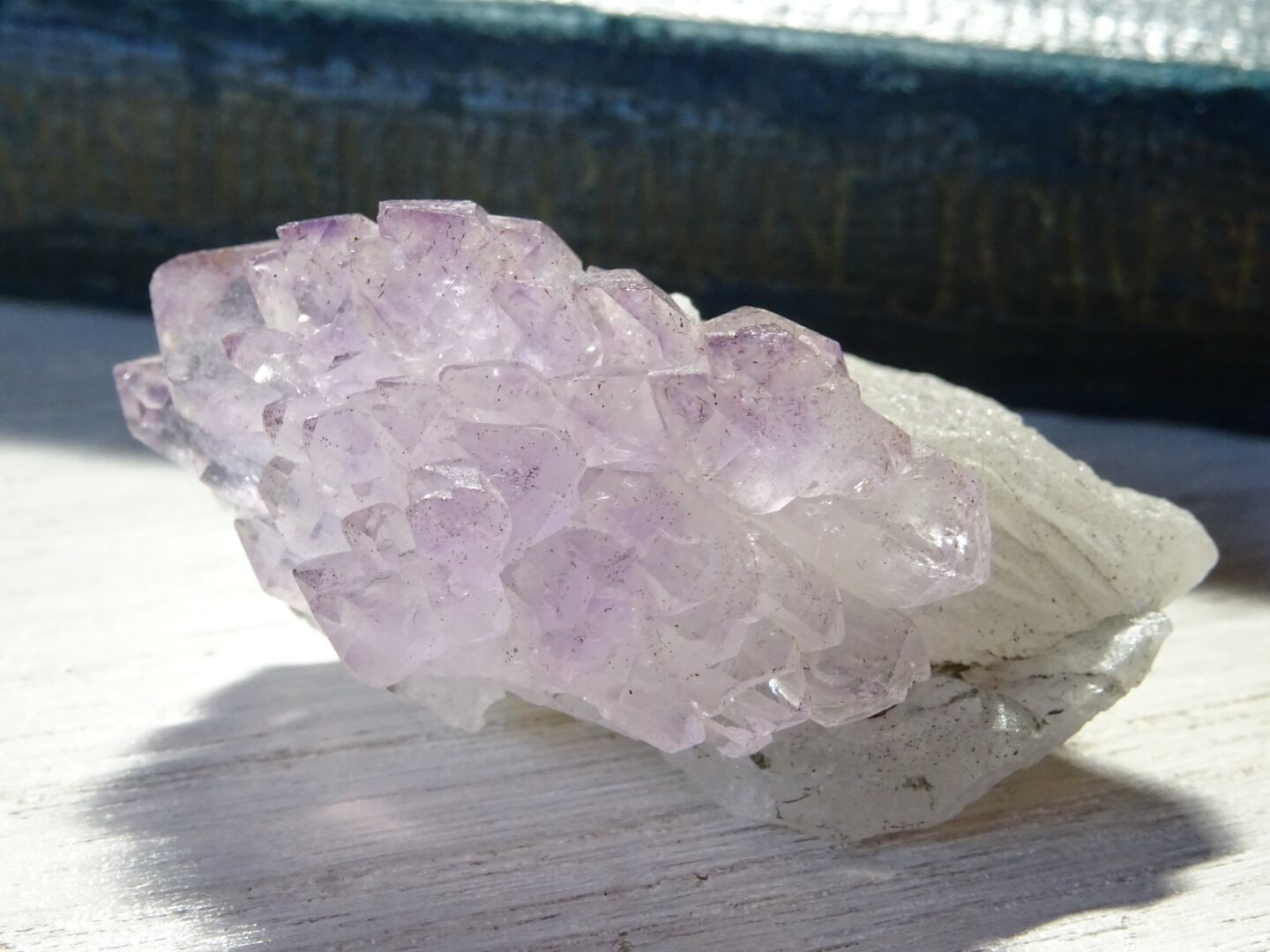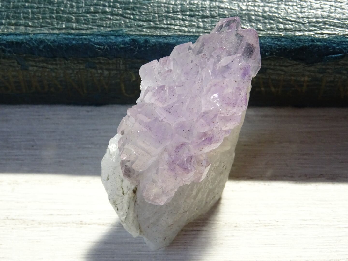 透明感のある淡いラベンダーカラーときらきらの反射がとてもとても綺麗。アメジストたちがわさわさと育っている様子や、ホワイトの部分もかわいいです。