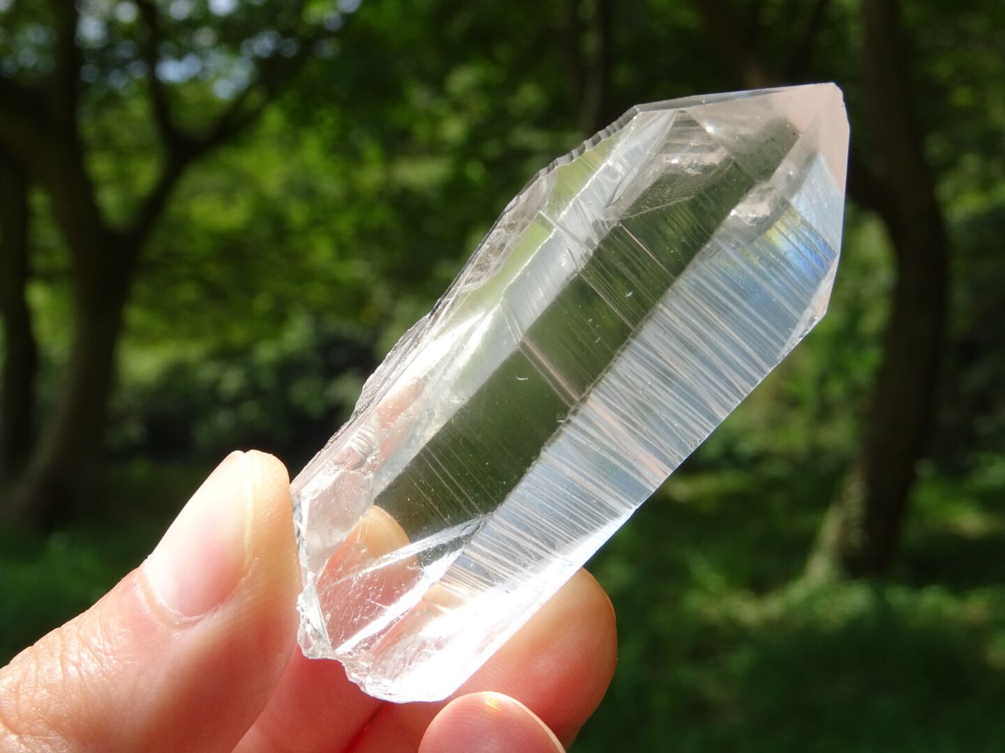 もちろんヒマラヤなどと比べると質感はかなり違うのですが、レムリアンでこうもクリアな結晶って珍しく、内側もノンインクルージョンのほぼフルクリアです。一面おきに綺麗に段々に出ているバーコードリッジも、とても素敵。