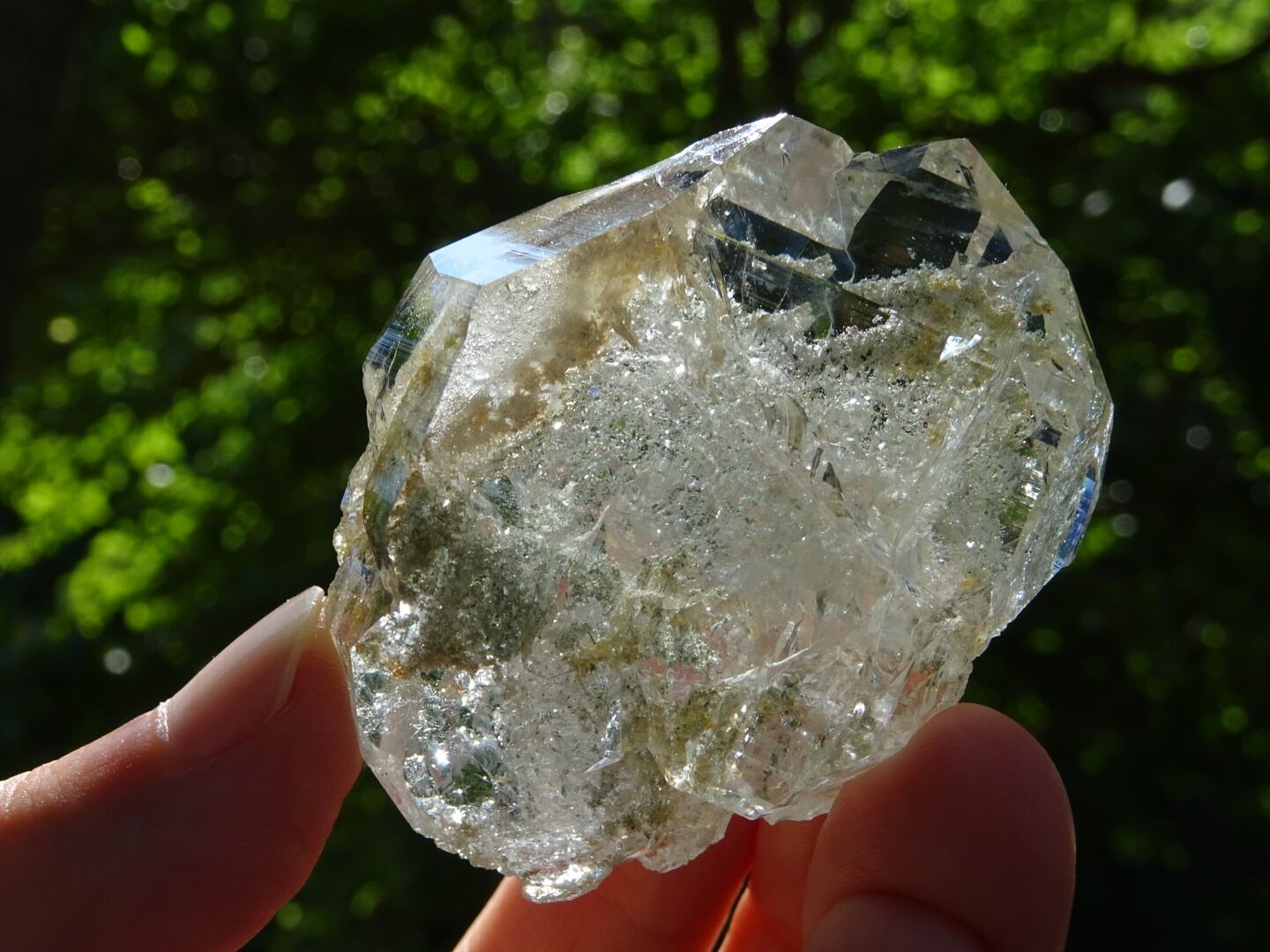 この石の場合、そのクリアさはもちろんなのですが、この優し気なクローライトの彩りと、ドゥルージーのきらきらに惹かれました。とてもメルーらしい、有機的な自然の優しさがあるなと。
