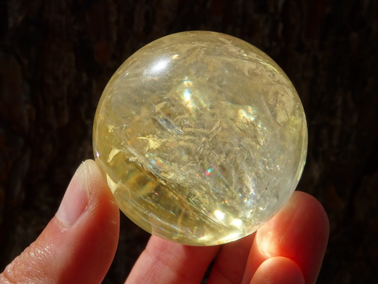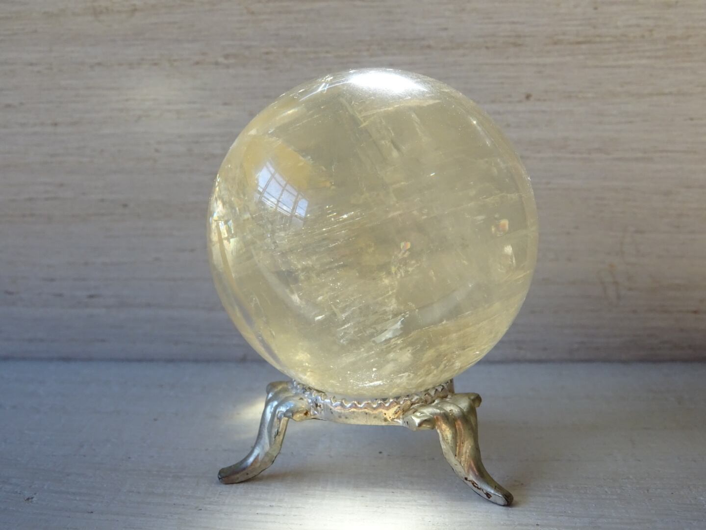 透明感のあるライトイエローカラーのカルサイト、スフィア。