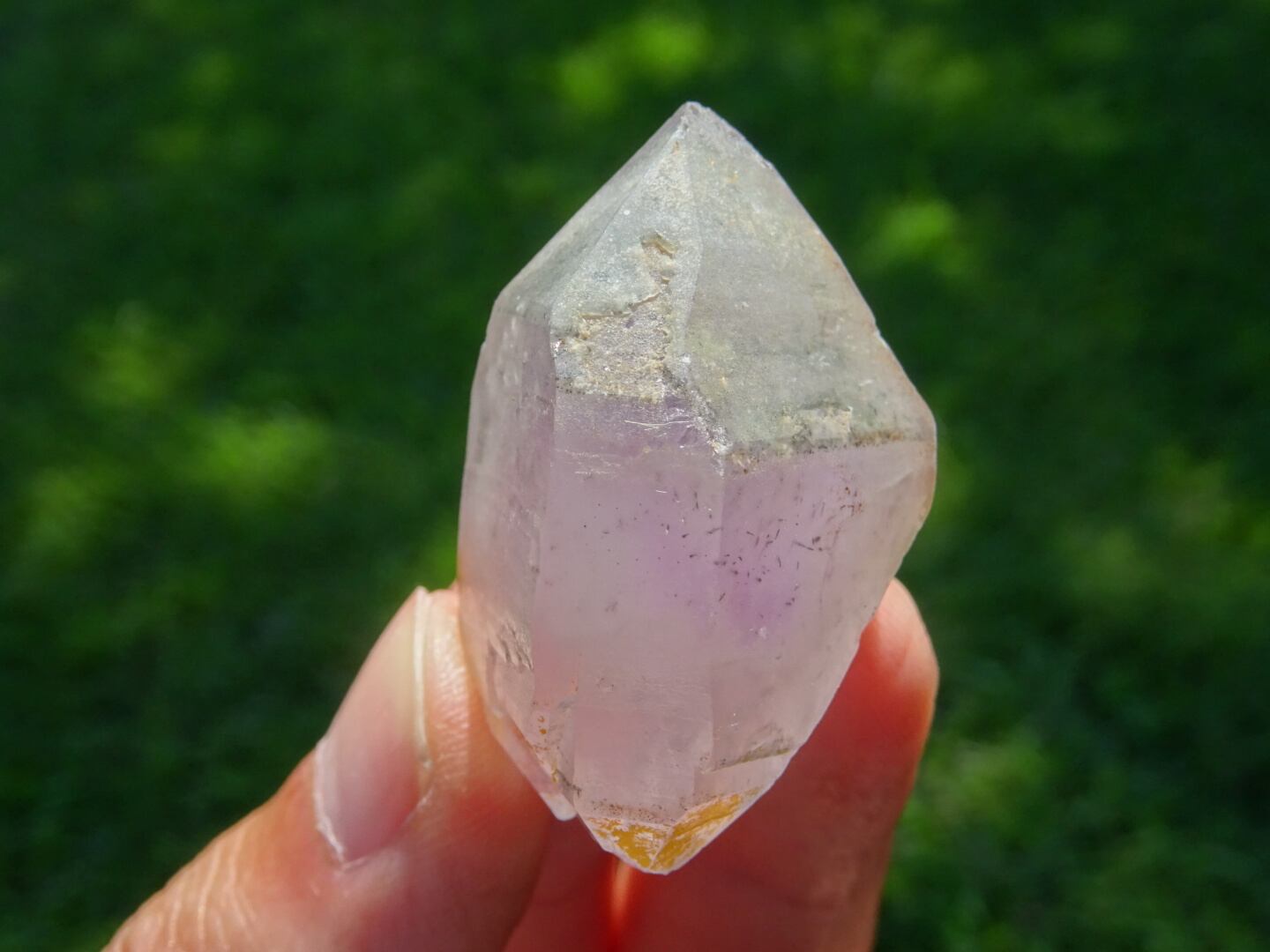 アフガンアメジストはダブルターミネーション(両錐型)になっているものが多く、淡く幻想的なラベンダーとホワイトカラーが特徴。