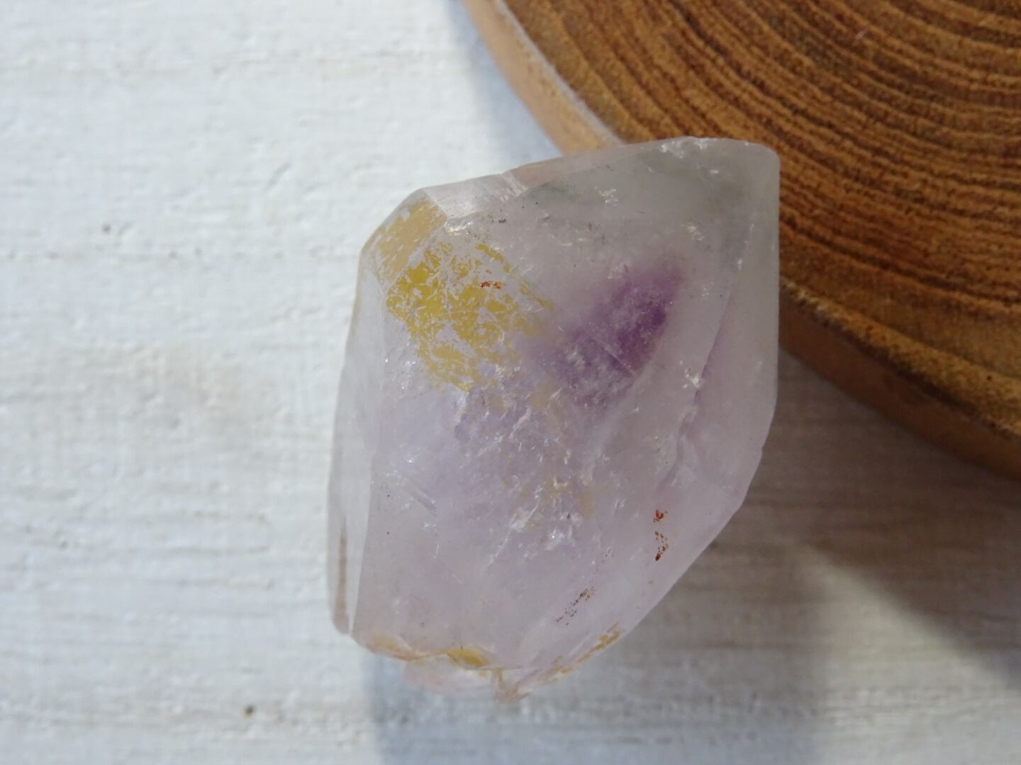 特別に綺麗だったり整っている石というわけではありませんが、店主はこのガズニーアメジスト、とても好きですしこころ惹かれました。