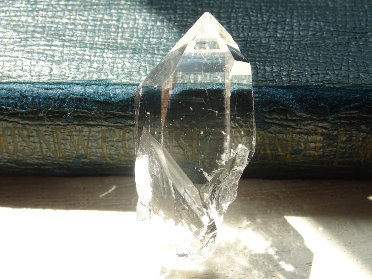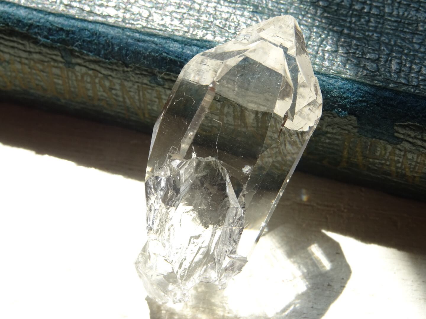 表面に雑味がないわけでもなく、またトップの一部に浅いカケがある部分もありますが、やはりとても美しい姿。こういったクリアな水晶は、写真よりも動画よりも実物のほうがずっと透明感を肌で感じられるかと思います。