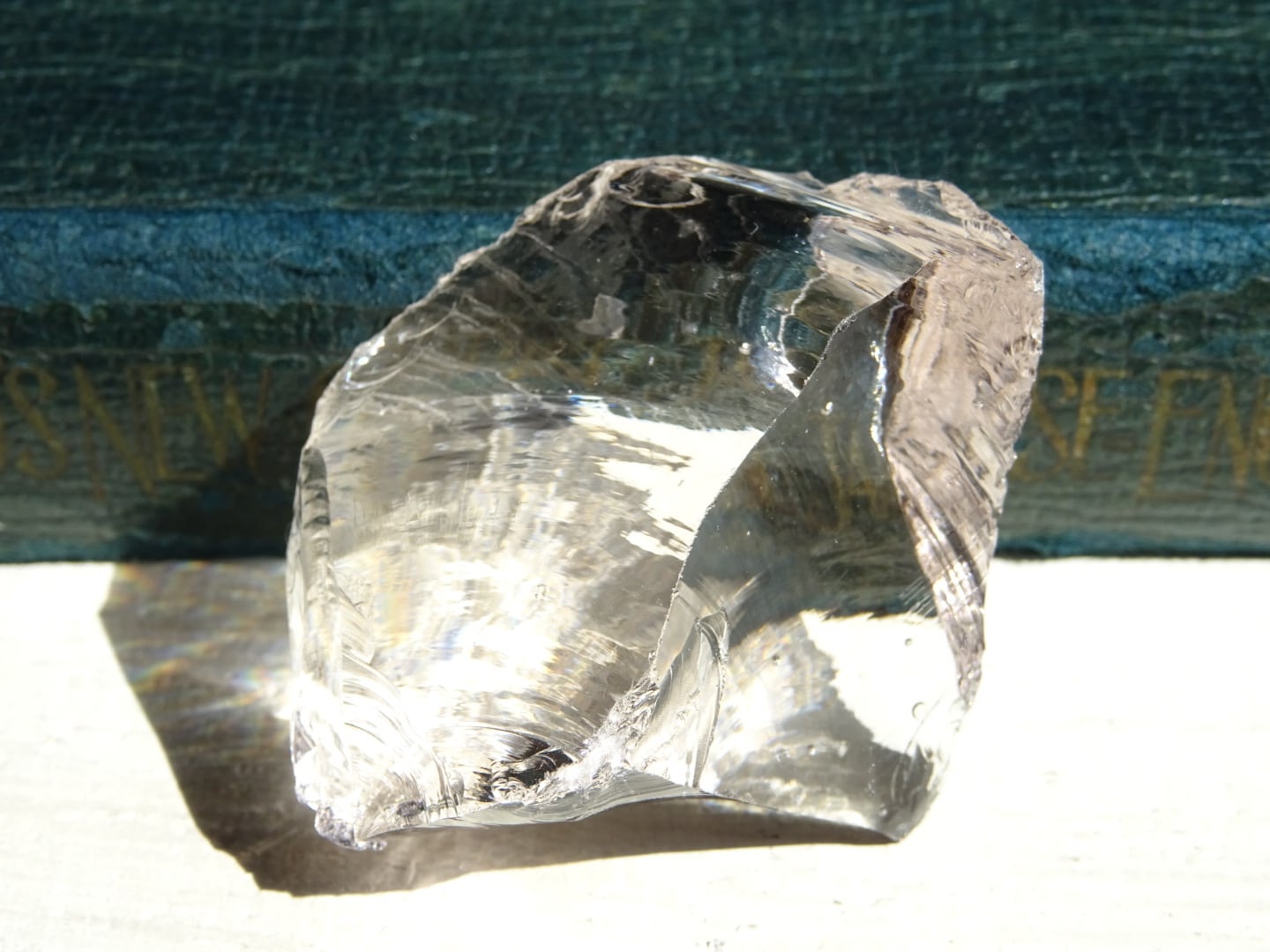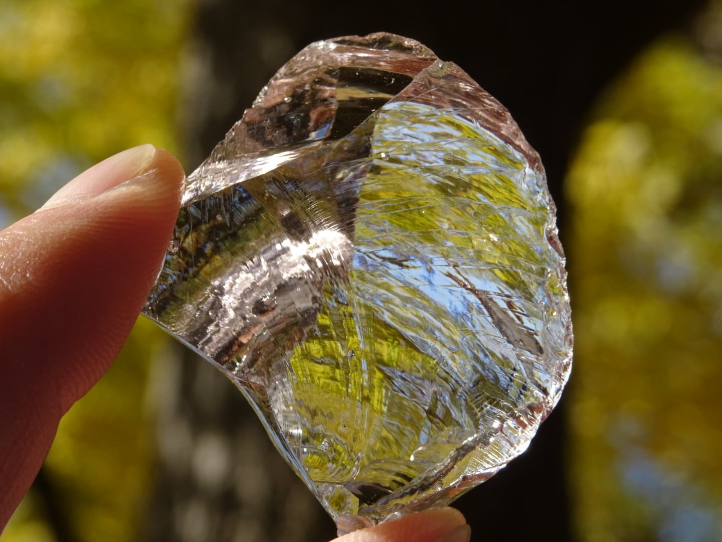 ほぼ透明に見える石肌は、うっすらとピンクがかっています。