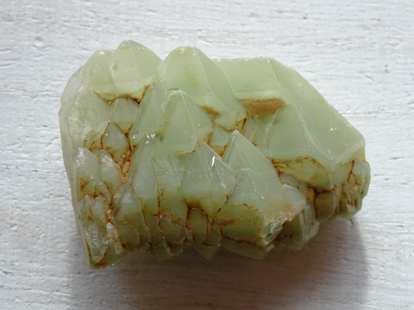エピドート(緑簾石)を内包することでグリーンカラーに染まった、美しいドリームクォーツの連晶です。