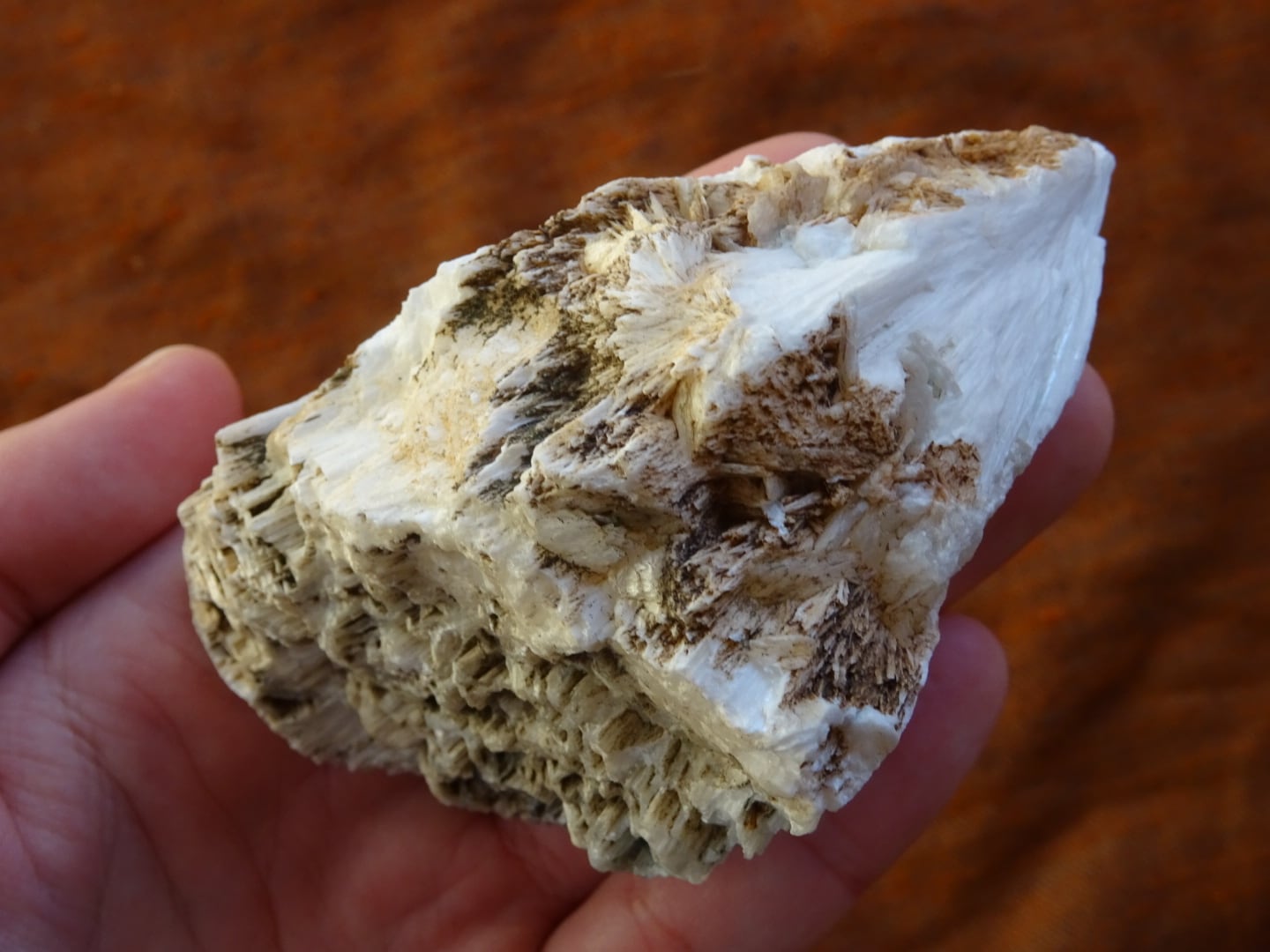 ゼオライト(沸石)として仕入れたのですが、光沢などの質感から察するに、おそらく同じゼオライトグループの「スコレサイトの原石」、ということなのではないかなと思います。