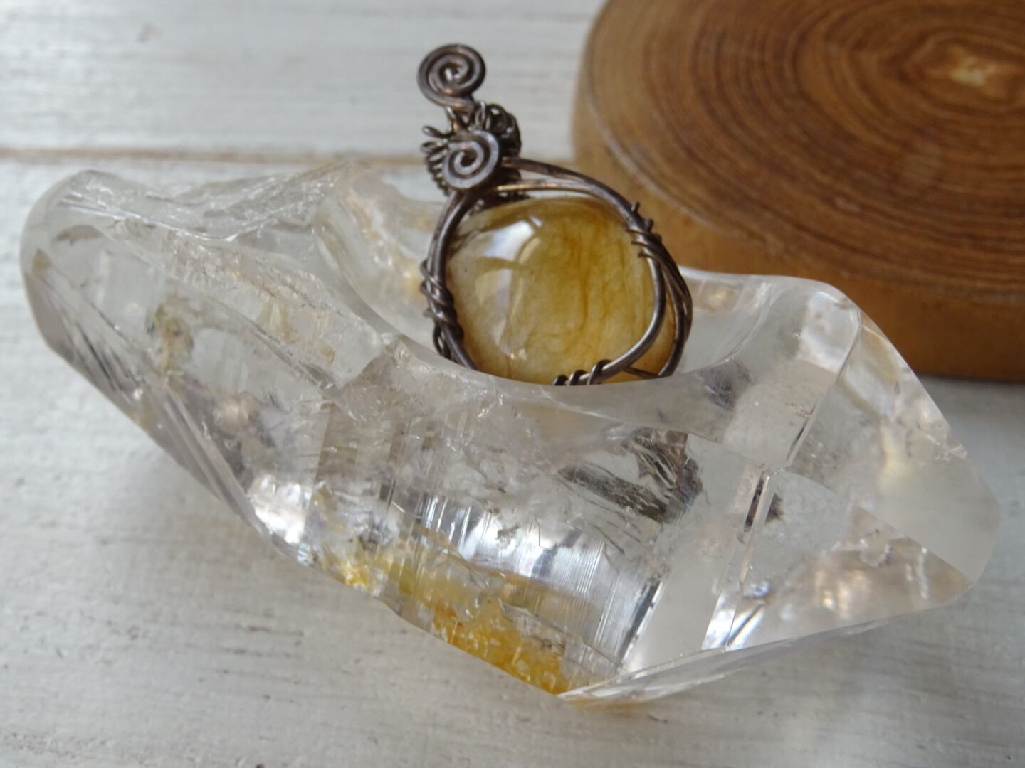 オリジナルの水晶のカタチも、象られた姿も本当に美しくて、ピカーっと光っているようなクリスタルのPowerを不思議にひしひしと感じます。ファセット部分にファントムが出ているのもいいですね。