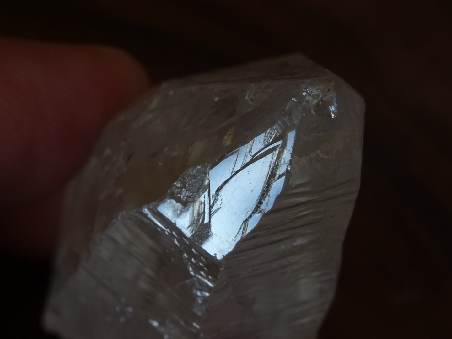 細長のファセットを正面として、その右隣の面は甘く蝕像を受けたような質感なのですが、よく見るとその下部に△のレコードがいくつか出ているのがわかります。